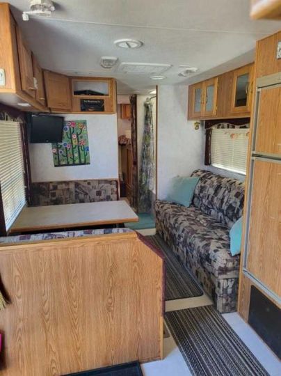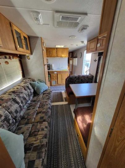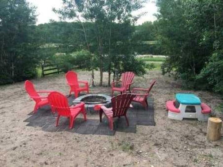 Shed 5x7, fire pit, red Muskoka chairs, picnic table, outdoor glass table and chairs, BBQ, 30' trailer cover, 29 Foot 2001 Vanguard Legend RV Serial # 2PETG217221020118