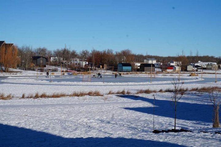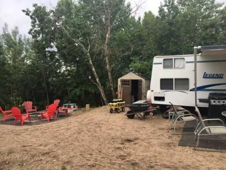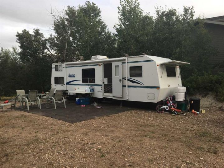 Welcome to this wonderful Lake property at 21 Sunset Lane in the community of Buffalo Sands! This well situated lot has 60 feet of frontage and backs onto the green space and serene pond. The pond, with fountains, provides serenity in the summer and in the winter becomes a curling ring, skating rink providing great fun for everyone. Perfect location for a future walkout or any other style of retreat your heart desires with no building time frame. Power is already on the property and equipment is provided to put in your sewer and water. This treed property includes a 29' 2001 Vanguard Legend RV that sleeps 8 with dining table, kids table and couch pulled out. Families will love this community with two beaches , private docks, paved roads, volleyball court, playground walking paths and only a 3 minute walk to beach and boats. Buffalo Lake is one of the largest lakes in southern Alberta and is well known for its many recreational activities both summer and winter. The nearby towns of Erskine and Stettler offer many varied amenities including : Golf, Recreational facilities and shopping. .See you at the Lake!