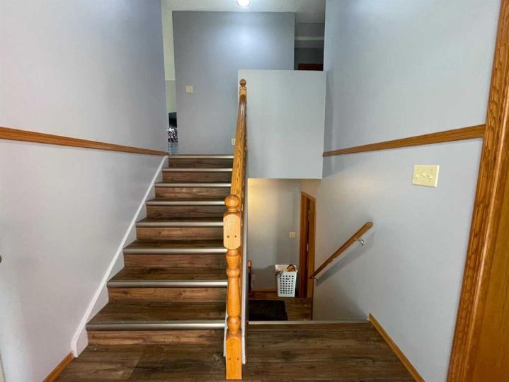 Check out this well-maintained full duplex on top of the hill near the hospital! This is the perfect home for investors or those looking to live in one side and rent out the other. The main floor of each side has a living room with a wood-burning fireplace, kitchen, dining area, two large bedrooms, and a 4pc bathroom. Downstairs you will find a large family room area that walks out to the fully fenced backyard, and a combined laundry and mechanical room. With the attached garages, front parking stalls, and the back alley this property offers lots of parking. Don't miss out on this great opportunity!