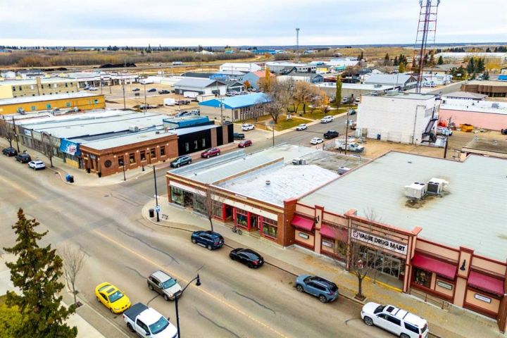 Prime downtown commercial building for sale in Wainwright. Located in the heart of Wainwright, this 4392 Sq. Ft. plus an additional 2500+ Sq. Ft. of basement space is perfect for your business. Its location gives ample parking for your clients being located directly across from the post office. Heated by two Roof Top HV AC Units.