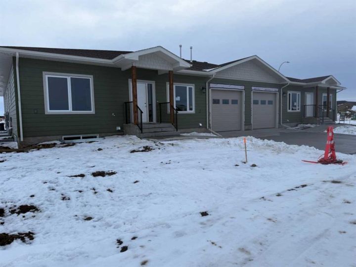 BRAND NEW, low-maintenance living in the new Parkview Crescent with NO CONDO FEES and the additional bonus of a $7500 property tax credit with the Town of Bow Island! Welcome to Parkview Crescent, Bow Island's newest subdivision, where modern design meets small-town comfort. This brand-new 1070 sq. ft. home is one unit in a JAYCO built four-plex, offering an efficient, low-maintenance lifestyle with no condo fees - perfect for seniors looking to downsize or young families starting out. Inside, the open-concept main floor features a bright living space with a stylish electric fireplace, a spacious kitchen and a dining area designed for easy living. With two bedrooms on the main floor, including a primary suite with a 4-piece ensuite, comfort and convenience come standard. Laundry can be on the main floor or in the basement, depending on your preference. This home also features: ICF Foundation for energy efficiency and durability, Attached heated single garage for year-round comfort, Undeveloped basement ready for your personal touch. You can move in and enjoy the ease of a brand-new home in a fantastic location. SELLER will include a $10,000 appliance package with reasonable offers. Pictures not exact representation of listed property. Listed price does not include GST.