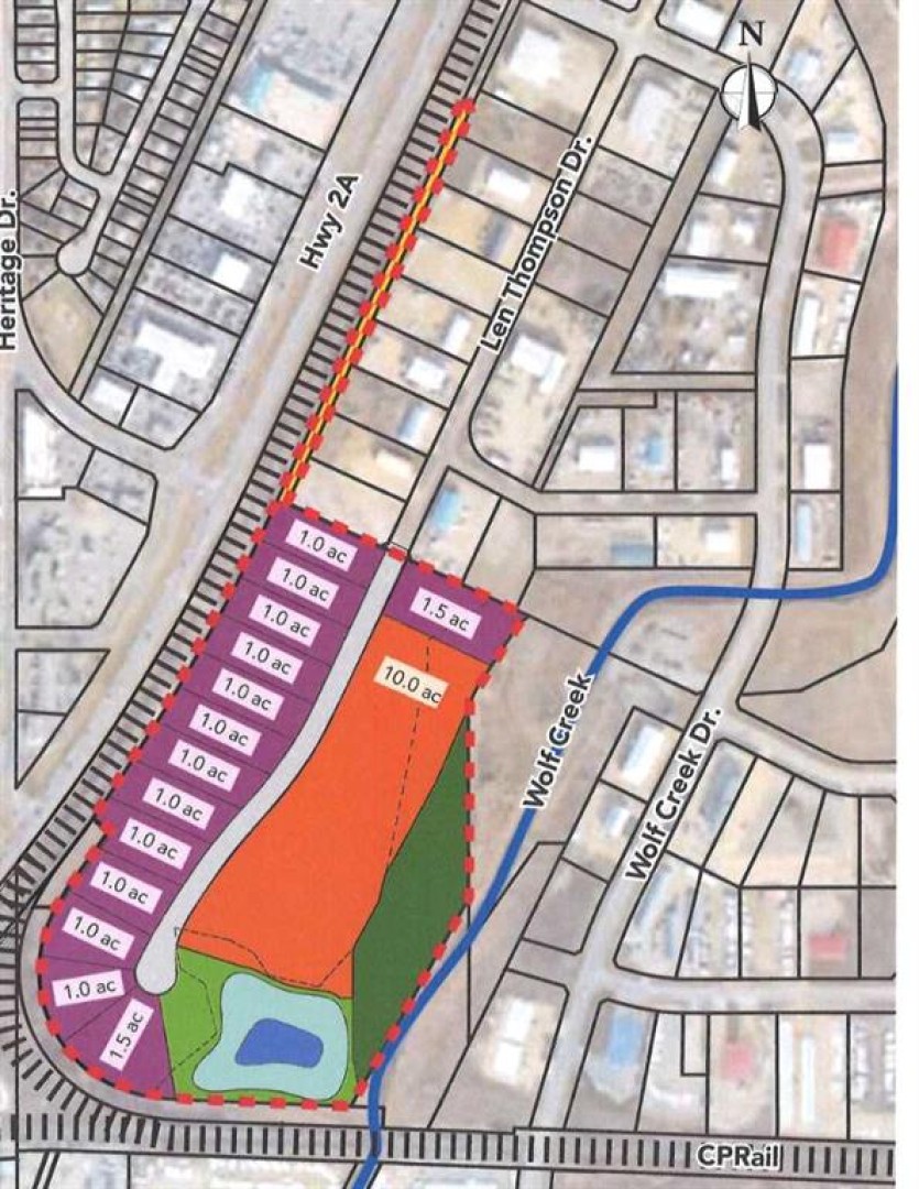 15 Acre industrial park in the heart of Lacombe. Easy access to Highway 2, 2A and 12. Great location across from the new Public Works shop and yard site. On pavement. Great visibility from highway 2A. Zoned light industrial and there is potential for commercial / retail uses as well. Shovel ready with street lights and services to lot. Lots are 1 to 1.5 acres but could easily be amalgamated for larger parcel needs.