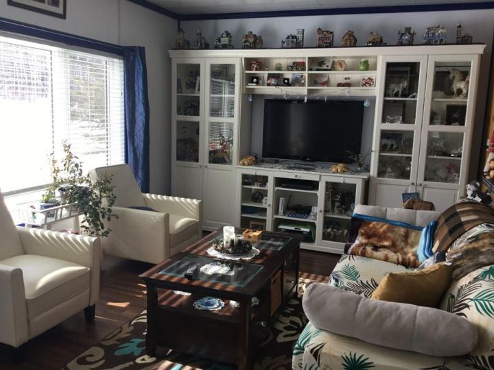 Spacious home, lots of room for a growing family! Don't let the age of this home keep you from viewing it.....lots of upgrades in recent years include a huge addition that almost doubled the sq. footage, mobile and addition are on pilings, metal roof, new insulation on walls and roof, newer windows, flooring, cabinets, counter tops, paint throughout, newly renovated bathroom with soaker claw foot tub, extra large shower and double sinks. The living room, kitchen and dining area with garden doors are all spacious... great space to entertain, the craft room is well lit with plenty of natural light. , Master bedroom is spacious with plenty of closet space. Outdoors features a nice deck with a covered barbeque area, fire pit area and flower beds with lots of perennials for easy maintenance. The quonset shop is insulated, heated , with built-in work benches and has a 9' X 9' overhead door. There is a green house and several storage sheds.