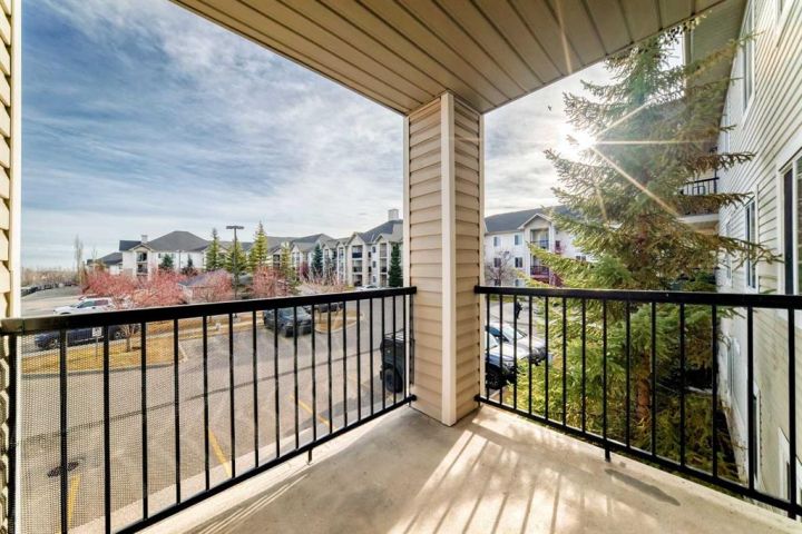 Wow!! Come see this BEAUTIFUL home!!! The kitchen includes NEW CABINETS, COUNTER TOPS, STOVE, AND DISHWASHER. Flooring is NEW VINYL. With an open plan are the adjacent large living and dining room with NEW CARPET. As well, the entire apartment has NEW PAINT THROUGHOUT. The 4 piece bathroom comes with a NEW VANITY. Spacious are the two bedrooms also having NEW CARPET. A bonus is the den with space for study or work activities. Enjoy nature in your sizeable balcony which overlooks the attractive court yard area. Convenient is the in-suite washer and dryer with storage area. Parking is a breeze in the UNDERGROUND TITLED parking stall. Close to shopping (Sobeys, Costco), schools (Evergreen School, Our Lady of the Evergreens and more), parks and transit; this home is very well located and a great value!!
