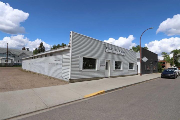 Commercial building located in Ponoka's downtown area. Situated on 52' x 130' lot, this 4048 sq. ft. building is suitable for a wide range of uses including retail, repair or service. There is a large open main area plus a loading/receiving area at the rear with an overhead garage door, office and a bathroom. Heating is boiler with overhead radiator/fan.