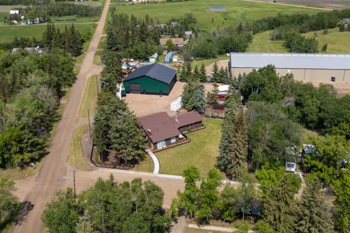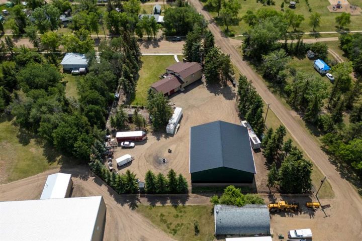 Welcome to this exceptional property located in the charming village of Alliance, AB. If you're seeking a quiet, peaceful, and welcoming community to call home, this is the perfect place. Set on a spacious one acre lot within the village, this 3 bedroom, 2 bathroom home offers both comfort and versatility. The fully fenced yard is designed for low-maintenance living, featuring a mix of gravel, paved areas, and lawn. A massive 64' x 64' shop with electrical service and a gravel floor offers endless possibilities, ideal for hobbies, storage, or even a home based business.