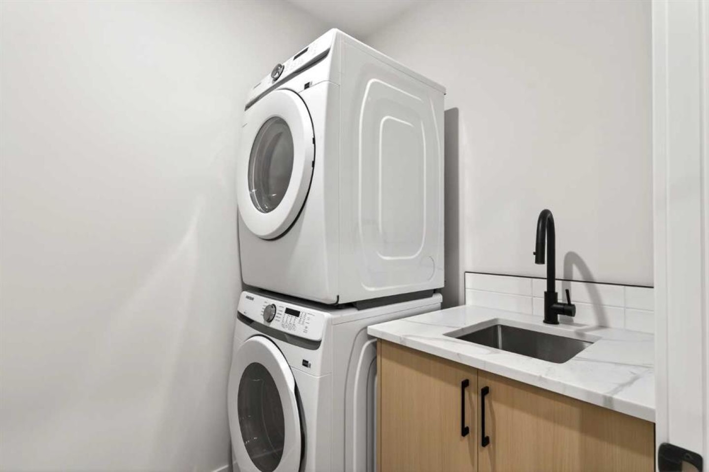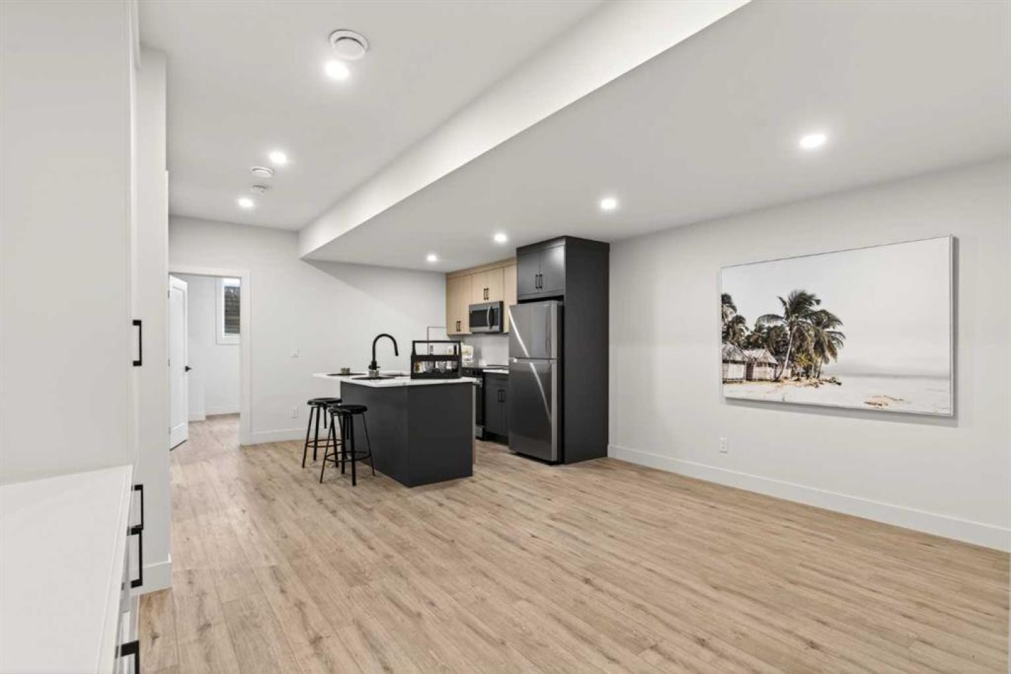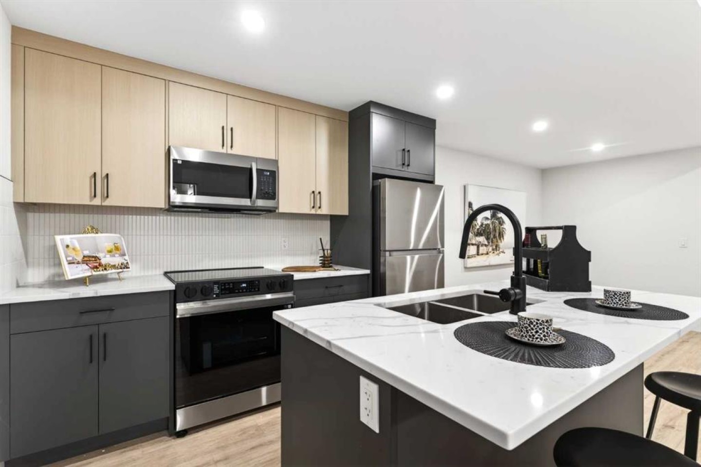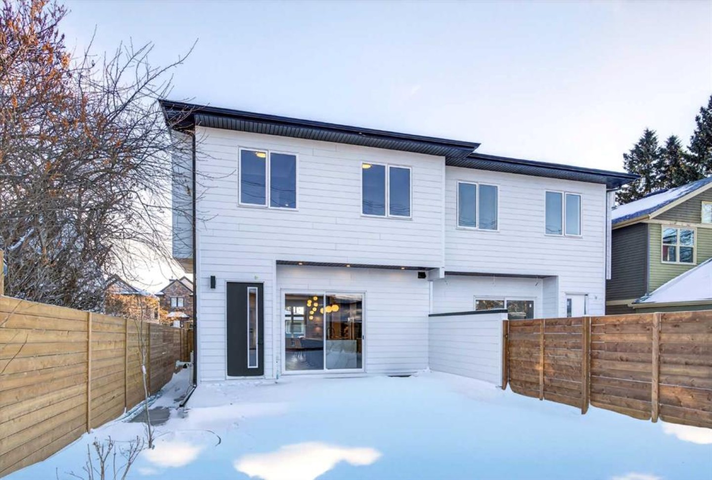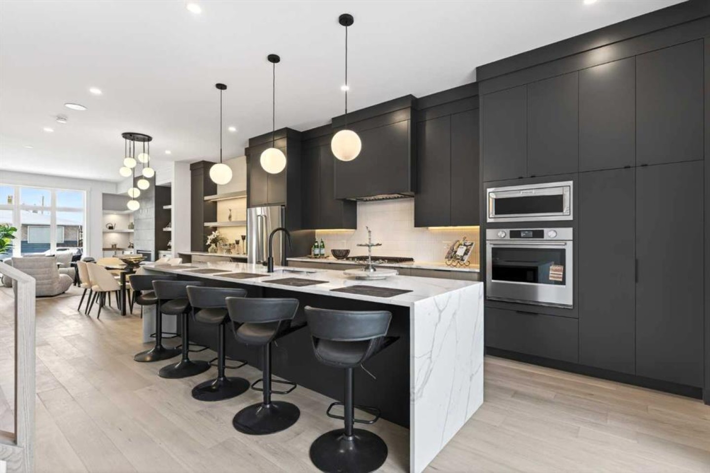 **Construction now Completed** Welcome to this brand-new, exquisitely designed luxury home located in the highly sought-after Killarney inner city area—an exceptional neighbourhood just minutes from downtown Calgary. This stunning residence offers superior finishes and thoughtful features that truly set it apart from the competition. Step into the unique main floor layout and be greeted by an inviting living room to your left, complete with a cozy fireplace and a discreet half bath. The centrally located dining area flows seamlessly into an adjacent built-in pantry and a spacious kitchen at the back, which overlooks a west-facing backyard with a raised deck — perfect for entertaining or relaxing outdoors. A practical mudroom with a walk-in closet completes the main level, providing ample storage and convenience. Upstairs, the large primary bedroom boasts a vaulted ceiling, private balcony, luxurious ensuite, and generous walk-in closet — a true retreat. Two additional secondary bedrooms feature elegant tray ceilings and walk-in closets, complemented by a well-placed upper laundry room for added ease. The fully finished basement offers a legal suite (pending full approval by the City of Calgary) with a central kitchen, two bedrooms positioned on opposite ends for privacy, and a shared living room area. The front bedroom includes a walk-in closet, sharing a modern four-piece bathroom. For ultimate comfort, the home is pre-wired with a rough-in for air conditioning and equipped with speakers on all levels. This home’s value lies in its exceptional style; stunning curb appeal, high-end finishes, and thoughtfully designed living spaces that elevate everyday living.. Don’t miss your chance to own this remarkable and stylish new construction home in the beloved Killarney community.