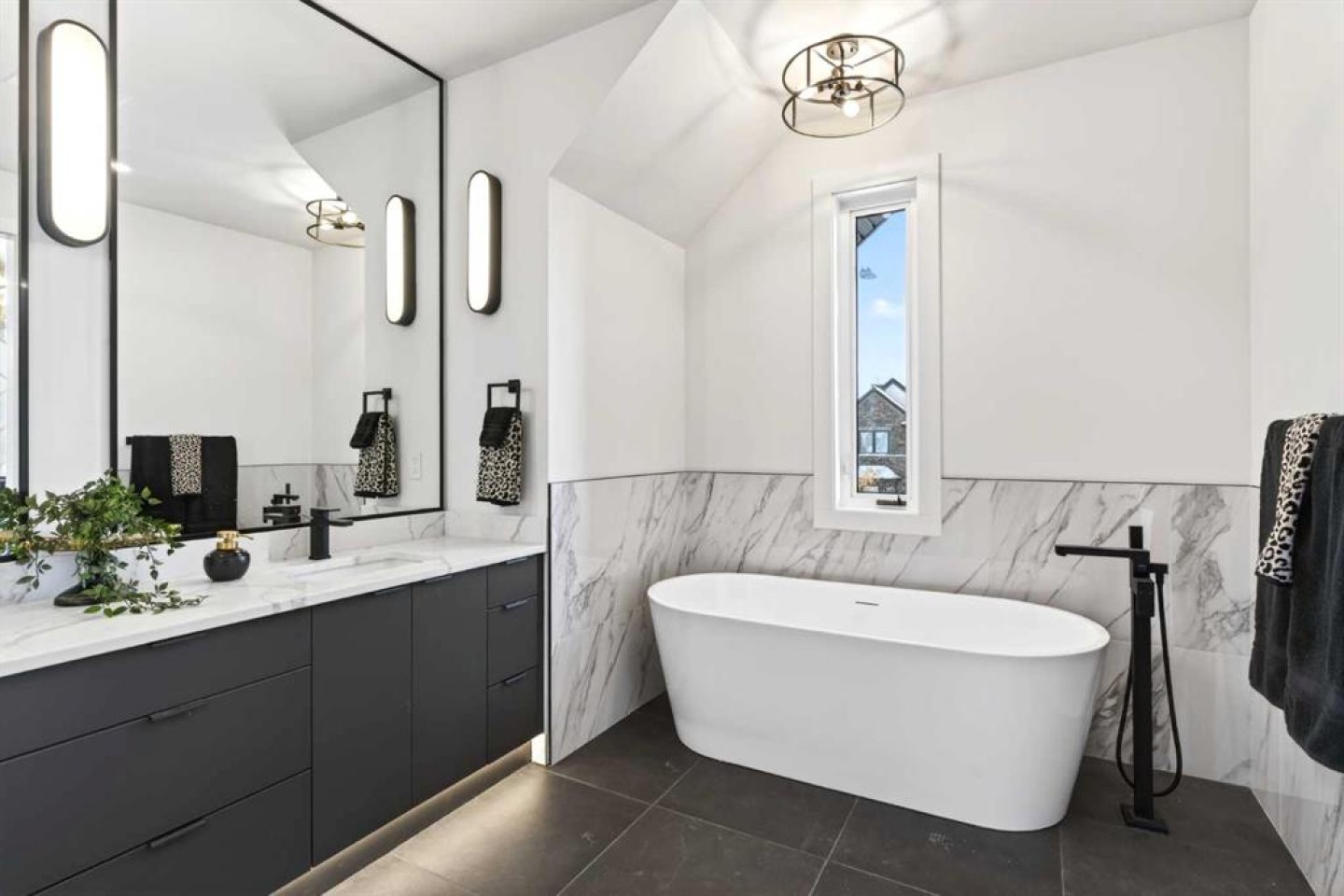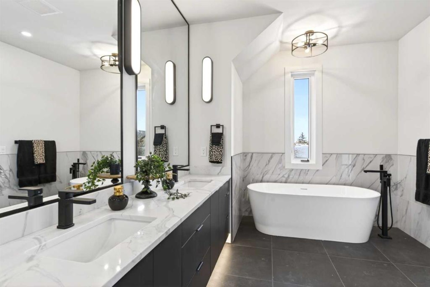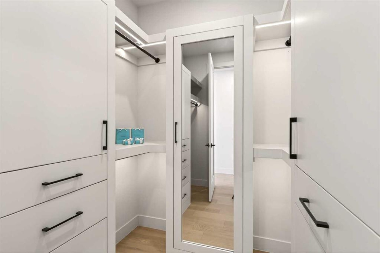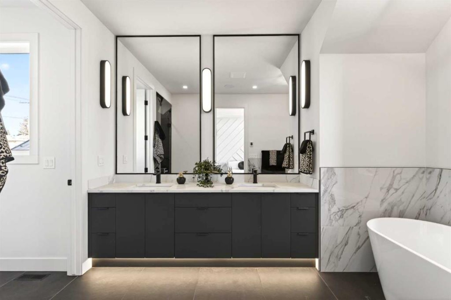 **Construction now Completed** Welcome to this brand-new, exquisitely designed luxury home located in the highly sought-after Killarney inner city area—an exceptional neighbourhood just minutes from downtown Calgary. This stunning residence offers superior finishes and thoughtful features that truly set it apart from the competition. Step into the unique main floor layout and be greeted by an inviting living room to your left, complete with a cozy fireplace and a discreet half bath. The centrally located dining area flows seamlessly into an adjacent built-in pantry and a spacious kitchen at the back, which overlooks a west-facing backyard with a raised deck — perfect for entertaining or relaxing outdoors. A practical mudroom with a walk-in closet completes the main level, providing ample storage and convenience. Upstairs, the large primary bedroom boasts a vaulted ceiling, private balcony, luxurious ensuite, and generous walk-in closet — a true retreat. Two additional secondary bedrooms feature elegant tray ceilings and walk-in closets, complemented by a well-placed upper laundry room for added ease. The fully finished basement offers a legal suite (pending full approval by the City of Calgary) with a central kitchen, two bedrooms positioned on opposite ends for privacy, and a shared living room area. The front bedroom includes a walk-in closet, sharing a modern four-piece bathroom. For ultimate comfort, the home is pre-wired with a rough-in for air conditioning and equipped with speakers on all levels. This home’s value lies in its exceptional style; stunning curb appeal, high-end finishes, and thoughtfully designed living spaces that elevate everyday living.. Don’t miss your chance to own this remarkable and stylish new construction home in the beloved Killarney community.