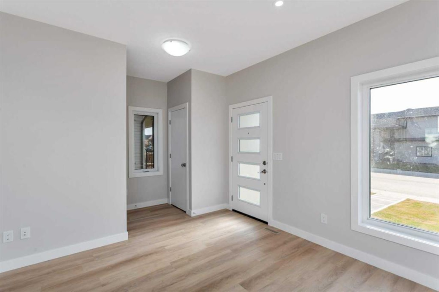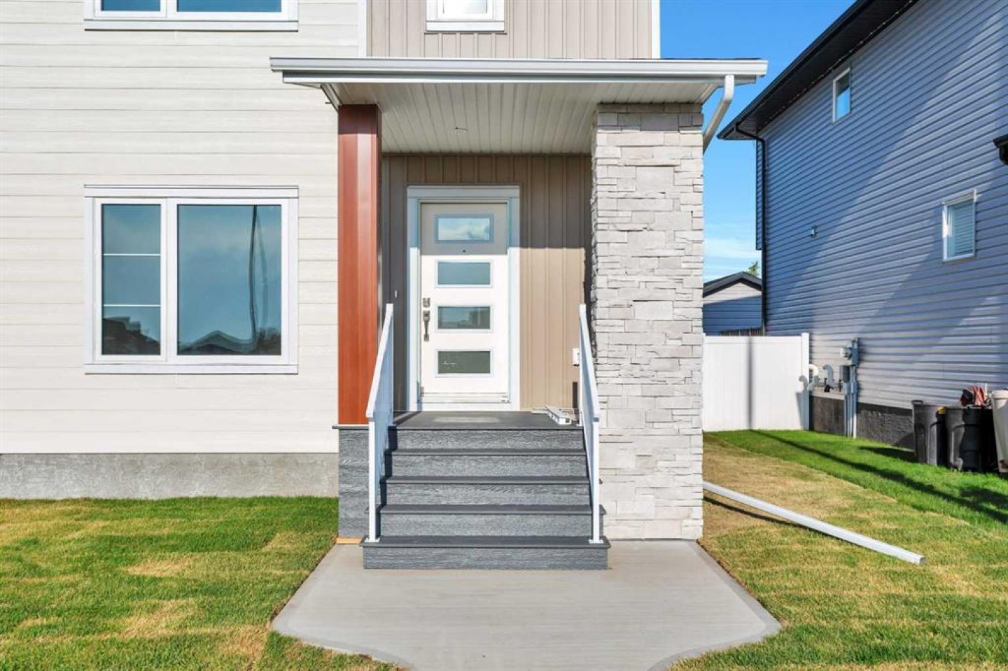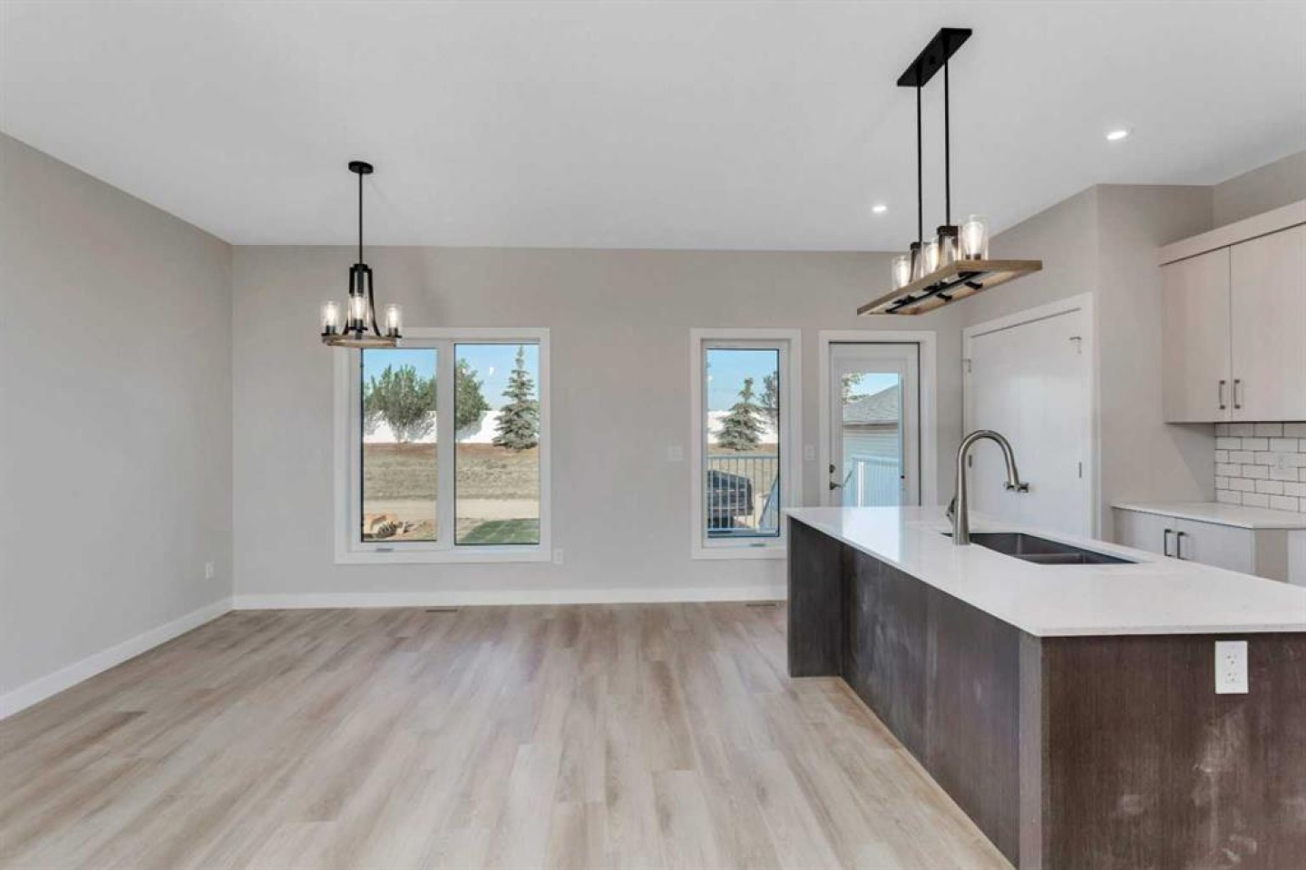 A beautiful 2 storey with all of the quality finishings you'd expect by Heartfaster Construction Ltd. Bright, open living room, with vinyl plank flooring and large area for furniture arrangement. Vinyl plank flooring continues into the kitchen & dining are & complements an abundance of neutral colored cabinets & Quartz countertops. There is a large island with room for seating & the dining area can accomodate a family sized table. Large walk-in pantry & 2 piece bathroom finish the main level. A wide staircase leads upstairs where there are 3 good sized bedrooms, a 4 piece bathroom with a window & spacious quartz vanity, & a 3 piece ensuite in Primary with a window & quartz vanity as well! There are his & hers closets in the Primary and an upstairs laundry room that includes side by side washer & dryer & handy built in cabinets. The basement plan outlines 2 additional bedrooms with large windows, a 4 piece bathroom & spacious family room. The back deck is 10x12 & overlooks a good sized yard that is sodded & includes gravel pad for 2 parking spaces. Windows are Triple Glazed, in-floor heat is roughed in & there is composite decking both front & back. Great location in newer neighbourhood, close to walking & biking paths & easy access to all that the thriving community of Blackfalds has to offer!