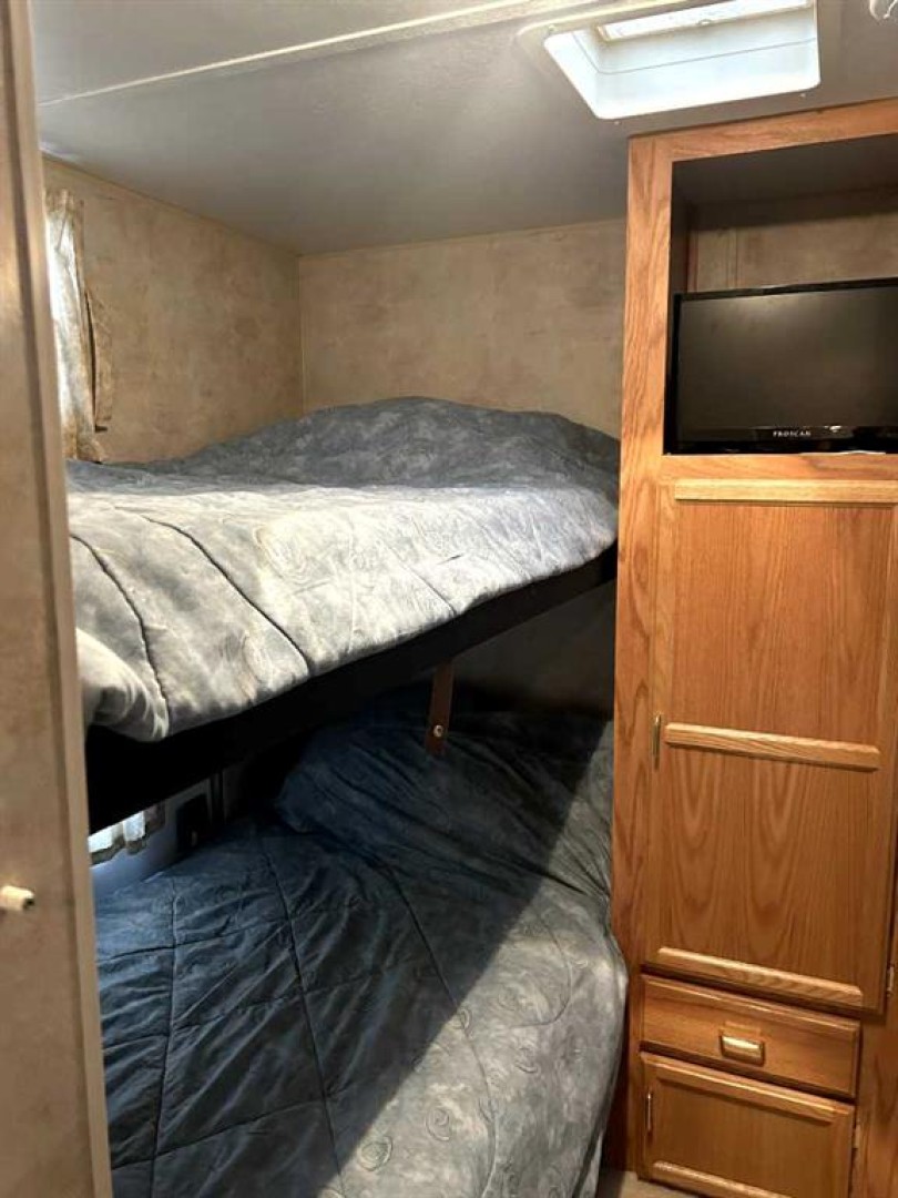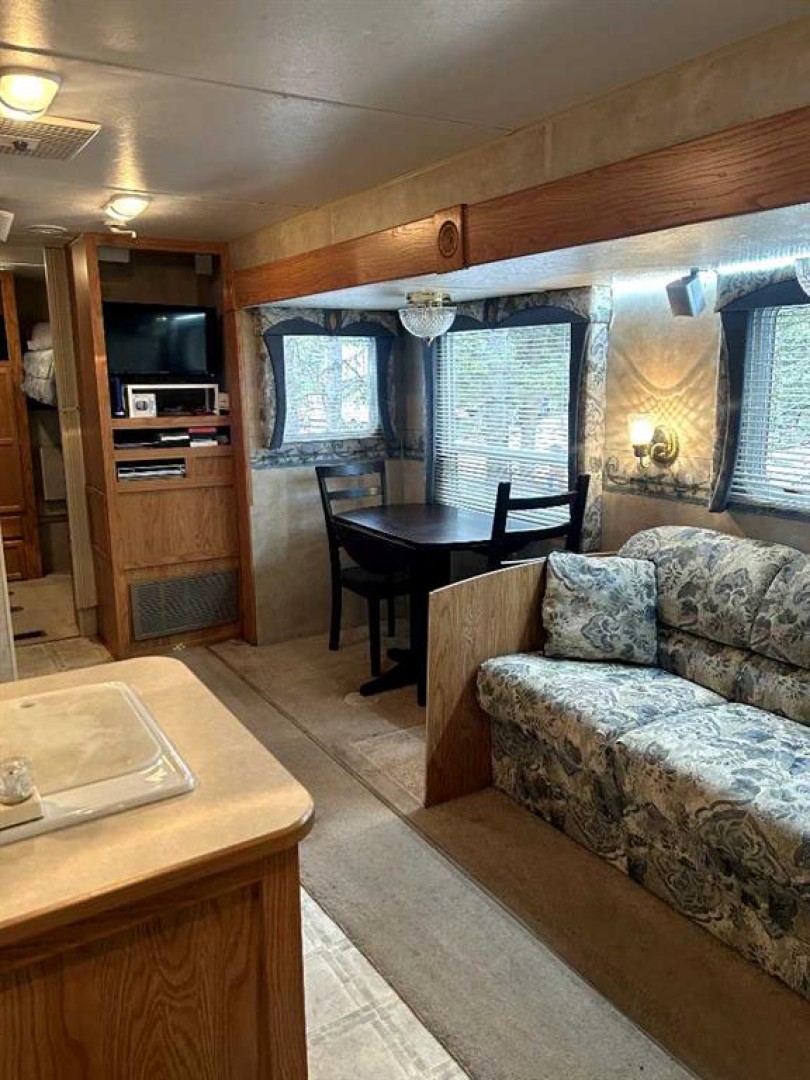 This exceptional offering includes two adjacent titled lots—each approximately 5,000 sq. ft.—in the sought-after gated community of Riverside along the Red Deer River in Sundre. Whether you’re dreaming of a shared family retreat, extra privacy, or a smart investment, this is a rare chance to own side-by-side recreational properties that truly feel like your own private oasis. Lot 112 features a 29’ 2004 Jay Flight trailer with two sets of bunk beds, a pull-out, and two bedrooms—comfortably sleeping 8—plus a large tool shed and a well-maintained outdoor space. The efficient kitchen and large windows flood the interior with natural light, while the comfy furniture makes it ready for you to simply unpack and relax. Enjoy mornings on the huge, covered deck, the perfect spot for coffee, or gather around the fire pit in the evening for marshmallows and stories. Lot 111 offers a large parking pad ready for your own trailer or park model home, a spacious 10x12 bunkhouse that is perfect for guests or grandkids, as well as a generous yard that feels a little like a fairytale the moment you step foot in it. There is an absolutely gorgeous area for outdoor entertaining, reading your favorite book, or simply soaking up nature in your new getaway retreat. Riverside is a gated community with seasonal town water and sewer, and everything is walking distance—just a short stroll to shops, restaurants, and many other amenities the town of Sundre has to offer. Additional facilities include a clubhouse, playground, horseshoe pits, year-round washrooms and laundry, beautiful walking trails all just minutes from golf, fishing, and endless mountain adventures. Properties like this rarely come available. Buy together or separately—either way, it’s time to treat yourself and embrace the lifestyle you deserve.