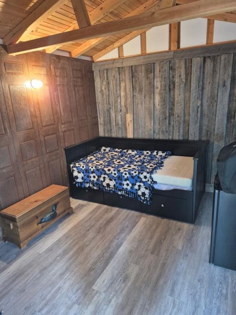 Bunk House, Shed, 29 ft Jay flight Trailer (2004), Cook house gazebo, 2 wood sheds