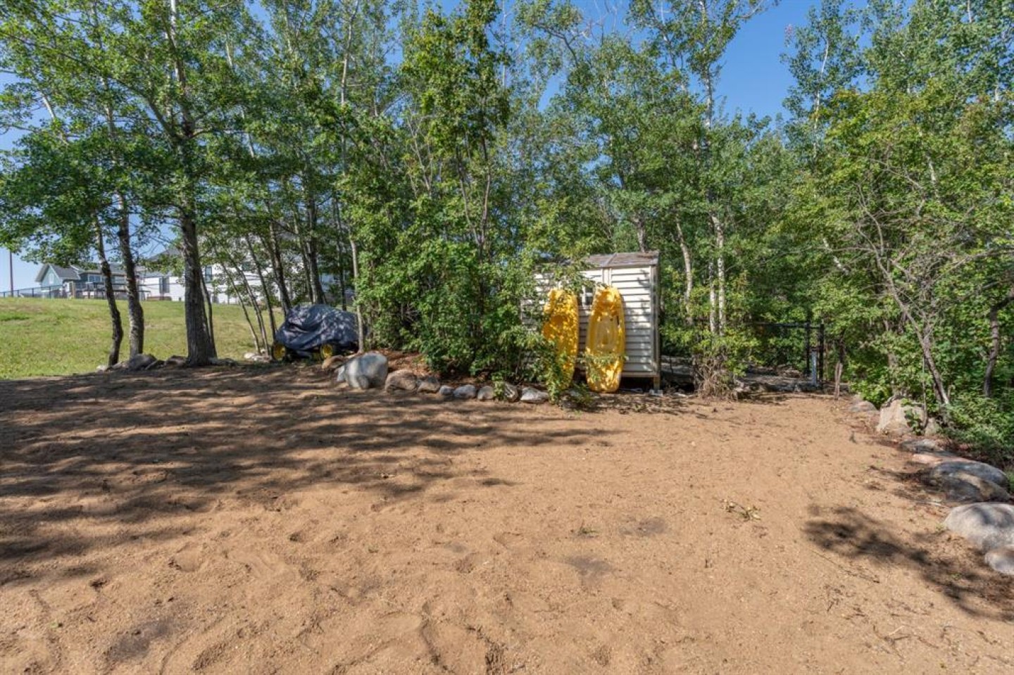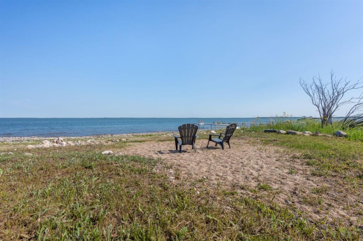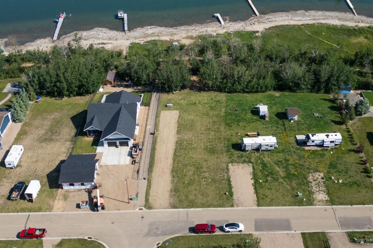 This is the kind of lakefront setting people wait years for—direct beach access, a private and peaceful lot, and room to relax or build. Located on the south shore of Buffalo Lake, 22 Marina Place offers a rare chance to own property where the lake is literally at your feet.Currently set up for RV use with electrical, water and septic service already in place, it’s ready for you to enjoy right away. Walk straight out to the water, launch your boat from your own pier (included in the sale), and end the day around the lakeside firepit tucked among the trees—perfectly sheltered from the north winds. This area of Rochon Sands is especially desirable, offering municipal water and a communal septic system, so there's no hauling in or out. Just a short walk brings you to the marina and boat launch, and the community itself supports an active outdoor lifestyle—paved roads, scenic walking and biking trails, rustic lakefront paths, and plenty of ways to connect with nature. Whether you're into boating, fishing, paddle-boarding, or evening walks, everything you need is right here.