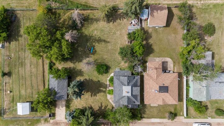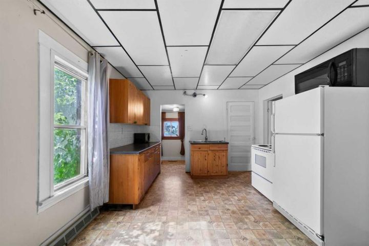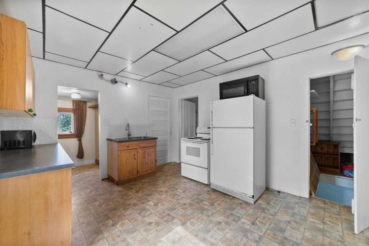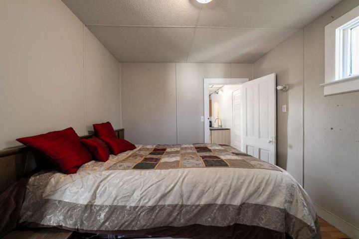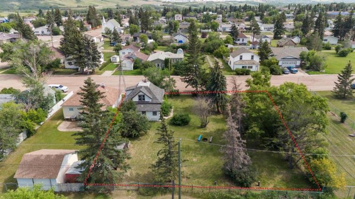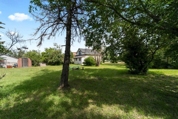 Step into timeless charm with this 1.5-story home built in 1917, ideally located in the welcoming community of Hardisty, Central Alberta. Set on a generous double lot overlooking scenic walking trails, this property offers the perfect balance of character, space, and small-town living. Inside, the home showcases original wood trim, solid wood doors, and hardwood flooring hidden beneath the carpet—ready for your personal touch. The main floor offers a spacious kitchen with ample room to customize with additional cabinetry or counter space. The open-concept dining and living room areas create a warm and inviting space for gatherings. You’ll also find a convenient main floor bedroom and a 4-piece bathroom that includes laundry for added practicality. Upstairs, three more bedrooms provide room for family or guests. The basement is clean, dry, and ideal for storage, hobbies, or future development. Outdoors, enjoy the peace and privacy of a fully usable yard complete with mature trees, including a fruit-bearing apple tree, a firepit area, a detached single-car garage, and a handy garden shed. Located in a vibrant town with its own lake, golf course, campground, grocery store, bank, hospital, and local shopping—this is small-town living with big-time amenities. Whether you're a first-time buyer, investor, or looking for a place with character and potential, this gem in Hardisty is one to see!