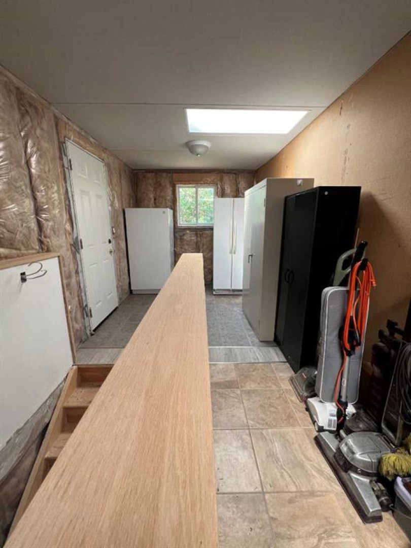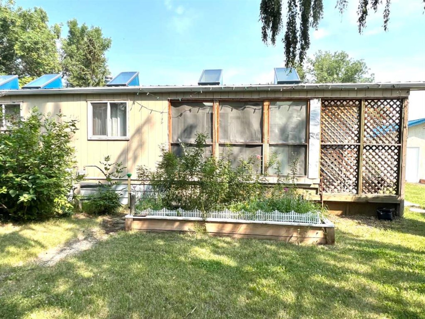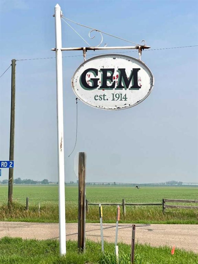 Looking For Your Perfect Little Gem? Here it is located on 2.57 acres in Gem, Alberta only a hop, skip, and jump to Bassano, Brooks, and Calgary. Hidden behind a row of mature trees this 1376 sq ft mobile home sits on it's own foundation. 3 bedrooms, 1 - 4 piece bathroom, a "U" shaped kitchen and sizeable living room that can accommodate the entire family. The exceptional 416 sq ft addition features a sizeable entry, dining room with 6 skylights and can can easily host a family of 12 or guests. Additional sq footage features a side entry complete with additional storage perfect for freezer, fridge coats, boots etc. The basement requires some minor finishing, it is framed, wired but requires drywall as well the bathroom requires finishing. The floor plan accommodates 2 bedrooms, bathroom, family room. 8" exterior walls in basement. Residential water is connected to Regional Water, surface water is EID irrigation. Mobile home has had "leaf filter" system integrated into the eavestroughs. This property has many smaller outbuildings that only a viewing of the property can justify. A garden area features many shrubs and fruit trees including raspberries, saskatoon berry, black current are only a few shrubs ready for harvest. This very private acreage needs a new owner to carry on the love and care for it the way the current owner has done over the past 25 years.