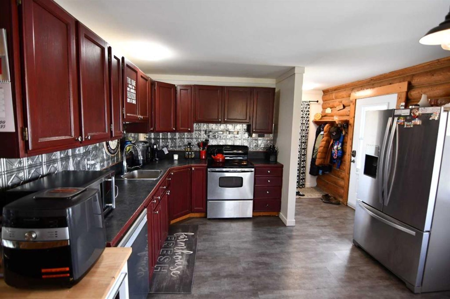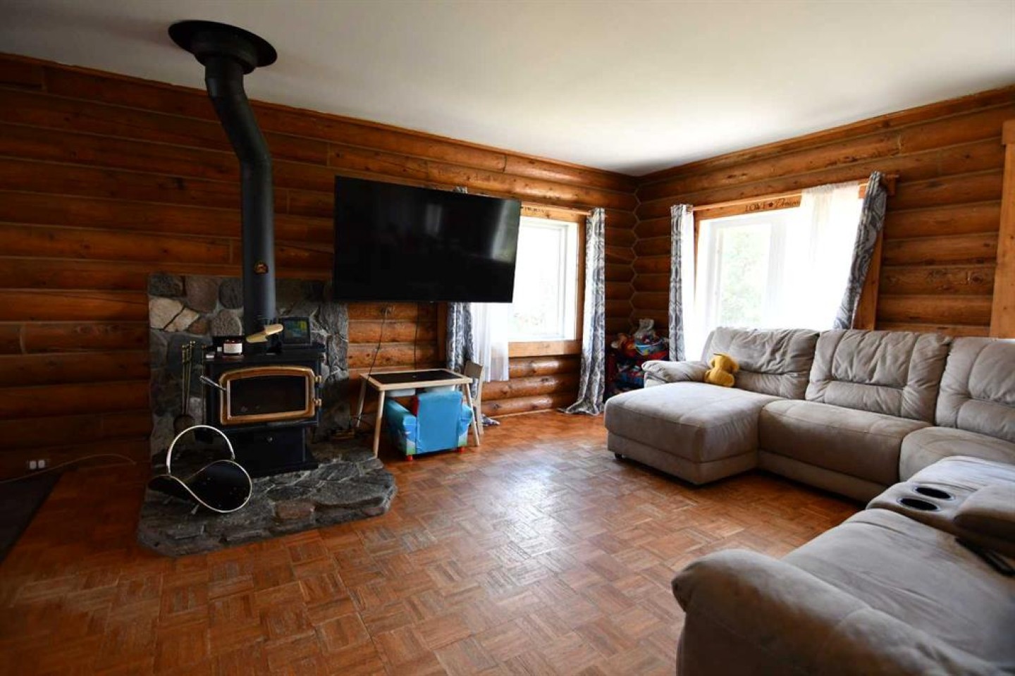 Welcome Home! This property with a 4-bedroom log home located just a few miles from the friendly town of Veteran offers a peaceful and rural lifestyle. This home has seen many upgrades over the years, the latest being new windows and shingles. The yard is well sheltered and with the wood stove, this home screams COZY (Especially at Christmas)