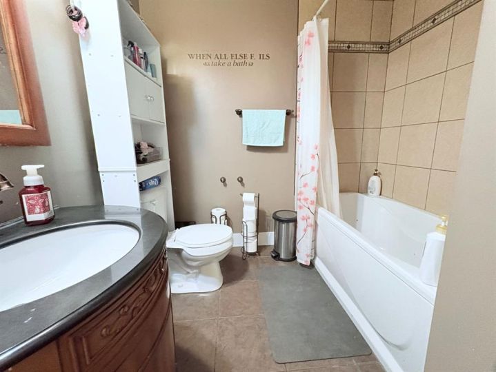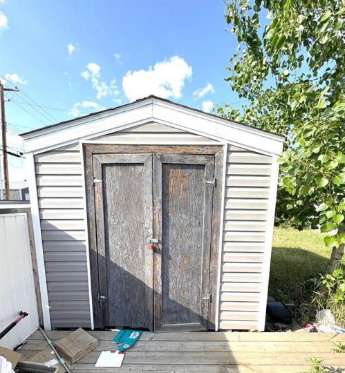 Outside, enjoy the benefits of a new metal roof, fresh vinyl siding, and a vinyl privacy fence. The expansive backyard includes a rear deck, garden shed, and drive through driveway with convenient alley access leaving plenty of space for gardening, play, or future yard plans.