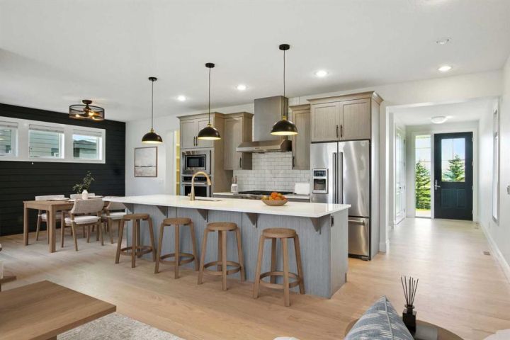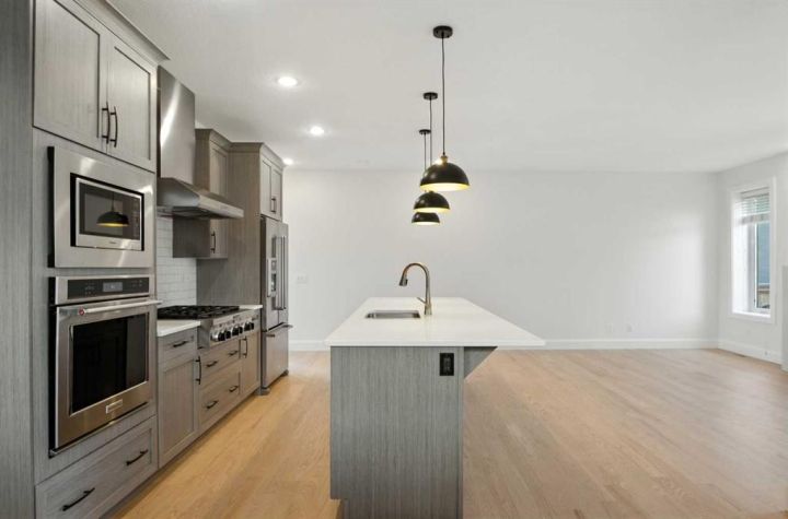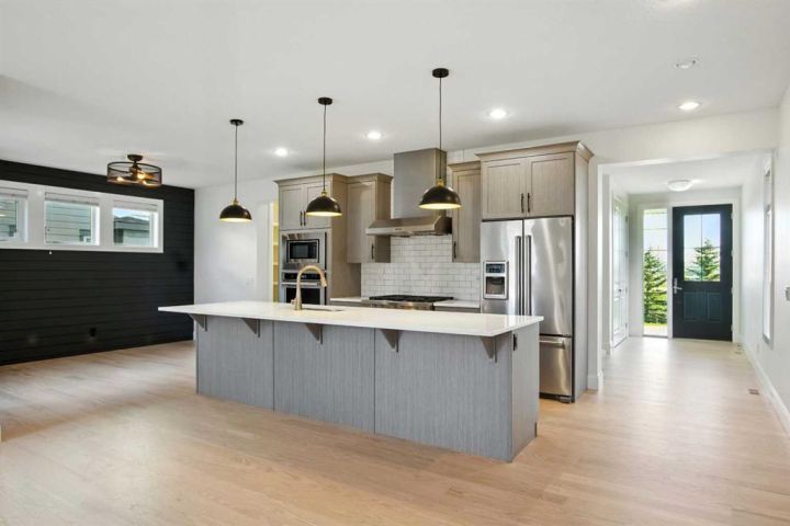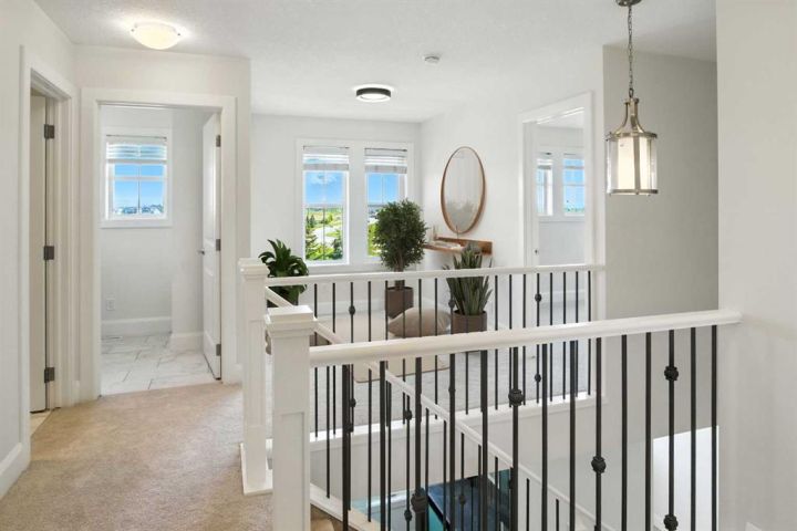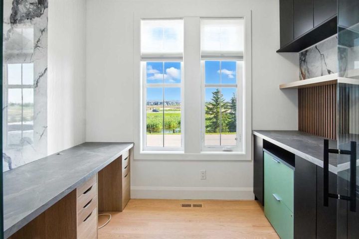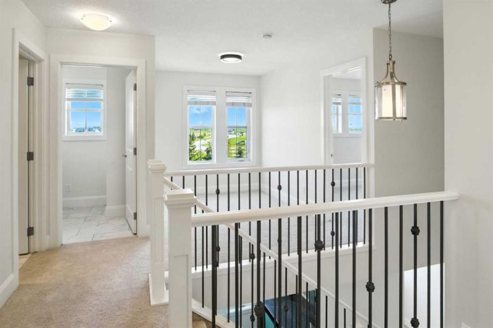 Ever wonder what it would be like to live outside of the city yet still have access to what the city has to offer and a quick escape to the mountains?! Well, it is time to leave the city for an amazing home in this sought after community of Harmony Lake District. From views of the wetland and lake, mountain’s close by and a renowned National Golf Course with the Clubhouse restaurant and accompanied by golf simulators and all, just a small walk away. This beautiful home overlooks the wetlands and lake from the front patio pad and steps and in the back, a complete oasis for a yard. This newly fully landscaped space with misting sprinklers offers a pergola, stamp and sealed patio’s, luscious green grass and beautiful blooming gardens which can only bring peace and wellness to your life. Your furry family members will feel right at home here with the gated dog run on the side and inside a special place for your small furry family members. In the community are amenities for all to enjoy such as Discovery Centre, lake and beach access, parks, pathways, volleyball courts yet more to explore. Harmony offers a lifestyle of convenience and recreation at your doorstep. This ever present home starts with a spacious foyer/hallway that will take you to the newly renovated office with 10 ml glass enclosure, built in desks, file cabinet and fridge or straight to the chef’s kitchen, family dining and fireplace adorned living room. From the dining area, you can access the mudroom that will guide you to the outdoor living space and an insulated and drywalled TRIPLE GARAGE at back, which backs onto a lane, and on the north, side of the garage is an additional outdoor parking pad. A gas heater and plenty of shelving for organization completes this TRIPLE GARAGE!. Kind of went off track, back to the home …Upstairs are two bedrooms, Primary bedroom w/WIC and laundry and a comfy workspace for quiet time or yoga. The fully permitted lower level has been completed recently adding two additional bedrooms, another 4pc bath and recreation area with a wet bar cabinet that offers space for a microwave, great for movie night and popcorn! As I mentioned earlier you will find that special place for your small furry family member under the stairs that has three access points, one for you and two for them. The owners have installed special venting for the cold air returns to stop any furry member’s fur getting into the HVAC and AC system. Please review the virtual video too truly get the welcoming feel for this home!