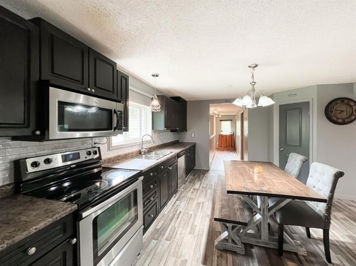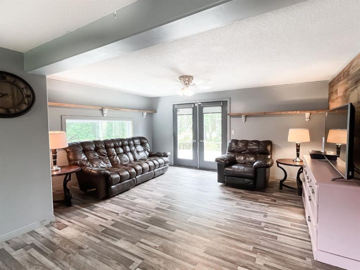 Welcome to this beautiful 5-bedroom, 2.5-bathroom home set on 4.58 acres in the charming town of McLennan, Alberta. Offering the perfect balance of small-town convenience and the peacefulness of acreage living. Step inside to a bright, modern, and inviting open-concept design where the kitchen and living room flow seamlessly together, creating an ideal space for entertaining or simply enjoying time with family. The kitchen is a chef’s dream, featuring abundant cabinetry, generous countertop space, stainless steel appliances, and a corner pantry. Meanwhile, sliding patio doors from the living area open onto the deck, allowing for effortless indoor-outdoor living. The main floor features three comfortable bedrooms, a luxury 4-piece bathroom with a large walk-in tiled shower and deep soaker tub, a convenient laundry room, and a 2-piece guest bath. Downstairs, a spacious rec room provides endless possibilities for relaxation or recreation, along with two additional bedrooms and another full 4-piece bathroom. A large mudroom keeps everything organized, and a wheelchair ramp ensures accessibility for all. The double attached garage offers secure parking and storage, while the maintenance-free metal roof delivers lasting durability and peace of mind. Outside, the sprawling 4.58-acre property is a private haven, perfect for gardening, kids to play, or simply soaking in the beauty of nature. This is a rare opportunity to experience the best of both worlds. Book your viewing today and make this beautiful acreage your forever home!