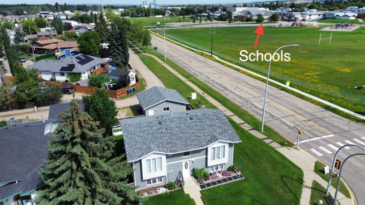 Step inside this welcoming 4-bedroom, 3-bathroom bi-level and you’ll instantly feel at home. The main floor offers three comfortable bedrooms, including a primary suite with its own 3-piece ensuite. A full 4-piece bathroom serves the other bedrooms. The kitchen has a fresh feel with new flooring and a layout that flows right into the bright, open living room — perfect for everyday life and family time. From here, head out to the back deck and lower patio, a great setup for summer BBQs or simply enjoying your morning coffee. The basement gives you even more living space with a cozy family room, the fourth bedroom, a 3-piece bathroom, and a laundry/utility area. There’s also plenty of storage plus a partially unfinished section, ready for you to design into whatever you need — maybe a home gym, playroom, or hobby space. Outside, this home has just as much to offer. The double detached garage is perfect for keeping vehicles out of the elements, and there’s convenient RV parking right at the end of the corner alley for easy access. The backyard is spacious with two raised garden boxes for growing your own veggies or flowers, and the wiring for a hot tub is already in place if you want to add that luxury. Recent updates include a new roof and siding (2020), furnace (2019) with regular servicing, central A/C (2014), hot water tank (2017), gutter guards, and new sinks in the upstairs bathrooms. With its thoughtful updates, functional layout, and unbeatable location close to schools, arenas, and parks, this home is ready for you to move in and make it yours.