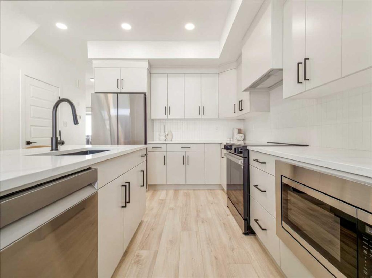 Welcome to our exclusive collection of modern towns nestled in the heart of the vibrant Southbrook community! Soho South is conveniently located within walking distance to an array of Lethbridge amenities. From shopping center's to dining options, everything you need is a short walk away. Additionally, Soho is just one block from the new Dr. Robert Plaxton Elementary School and only a 5-minute drive to Lethbridge College. The project offers 2 and 3 bedroom units, each with ample space for relaxation and entertainment. The basement is fully developed with another living room, bedroom, and full bathroom. Experience an open concept layout on the main floor with expansive ceilings and seamlessly connected living and kitchen areas. Perfect for hosting gatherings or simply enjoying quality time with family. Forget the hassle of landscaping and fencing – our townhomes come fully equipped with front and back landscaping, as well as fenced yards, providing residents with a hassle-free living experience from day one. With no condo fees or restrictions your furry friends are welcome to join and enjoy private yard. With its premium location and numerous amenities, Soho South presents an excellent lifestyle for young professionals or individuals looking to right-size. Estimated completion is scheduled for Summer 2025. Home isvirtually staged. NHW. FIRST TIME BUYER! ASK ABOUT THE NEW GOVERNMENT GST REBATE PROGRAM WHERE YOU COULD RECEIVE THOUSANDS. Certain restrictions apply