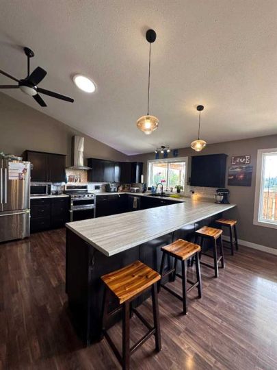 2500 sq ft. located North and East of Plamondon on Sec Hwy 858. Situated on 160 acres this home is set back on the property and views a small lake from the rear deck. This beautiful hobby farm is ready for you and your family to live in peace and quiet. This small farm is already equipped for chickens, horses, ducks, pigs and a small herd of cattle on the 160 acres . This spacious house features 5 large bedrooms, huge family areas like the 30 x 20 kitchen dining area, massive living room with new rock faced fireplace and efficient wood insert. There's plenty of space for a large or growing family with over 5000 sf of living space. Other features include a large attached garage for toys and vehicles. The massive covered deck overlooks the private pond and horse pasture and chicken coop , what a place to enjoy a morning coffee or an evening glass of wine. This home also has two water sources , a 3200 gallon cistern and a well to water the livestock. Call today for a showing on this one of a kind piece of paradise.