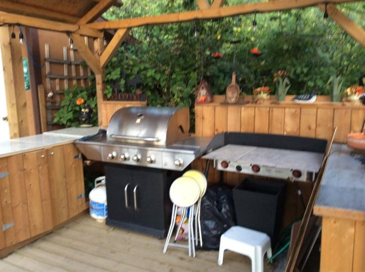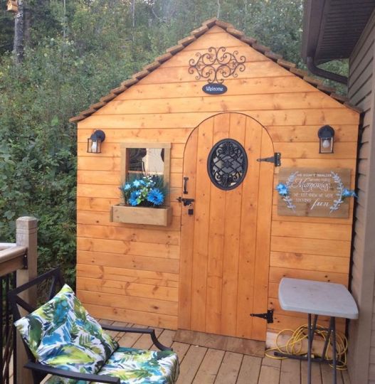 Fridge, Microwave, Outdoor Kitchen, Storage Sheds, Play House, 2011 Innisbruck Holiday Trailer, and Golf Cart.