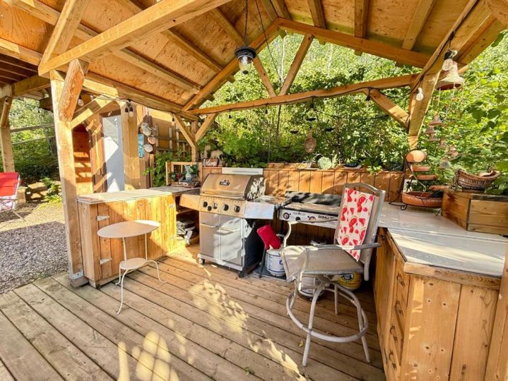 Beautifully planned Lauman's Landing Property. Large lot backing onto greenspace. Only one neighbour to this wonderland oasis. 300 sqft Guest House with full bathroom and prep area with fridge. There's plenty of storage as well as a Murphy Bed and pull out sofa. This cottage is designed to be your home along with the outdoor kitchen and Holiday Trailer for additional guests. This stunning lot is to be built on by 2030; however it is set up for lake time fun while you plan your build. A boardwalk across a bridge through the trees takes you to a large entertainme dining and cooking gazebo. A few more steps up and you're on a rooftop deck watching the sun set over the lake. Panoramic views of Lac Des Ilse from this perch are stunning! A custom made playhouse for the kids or parking your cart in. The upper level makes a great place for kids to play or sleep. There is even a deck on the playhouse! Every square foot of this lot has been caringly placed with family fun, entertainment, storage and a future build in mind. Storage sheds for equipment and firewood, as well as custom bins and cabinets throughout the lot. All the buildings have been professionally built with quality products and attention to detail. Bring your cold beverage and sunscreen. There is still time to enjoy sun at this sought after fishing and summer fun location.