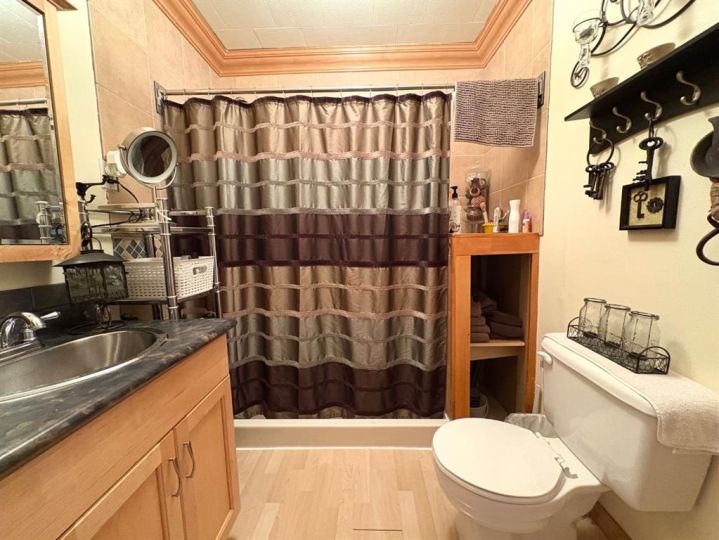 The renovated basement is a true retreat, complete with room for a king-sized bed, a cozy living area, a 2-piece bath plus adjoining powder room, and a luxurious walk-in shower. A large walk-in closet with built-in organizers and a generous storage room complete the lower level. Main floor laundry adds convenience.