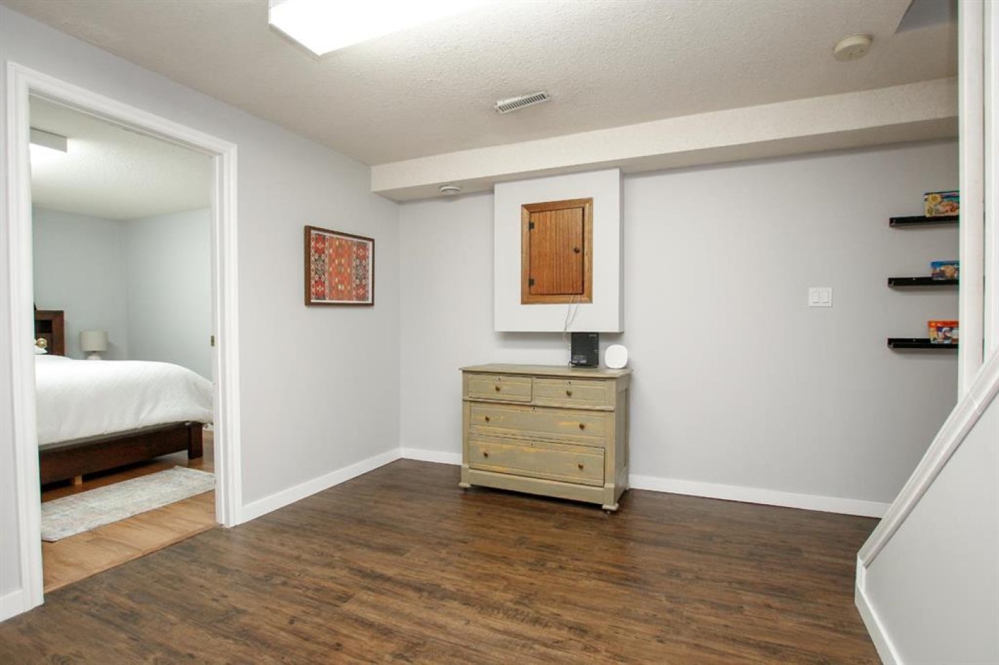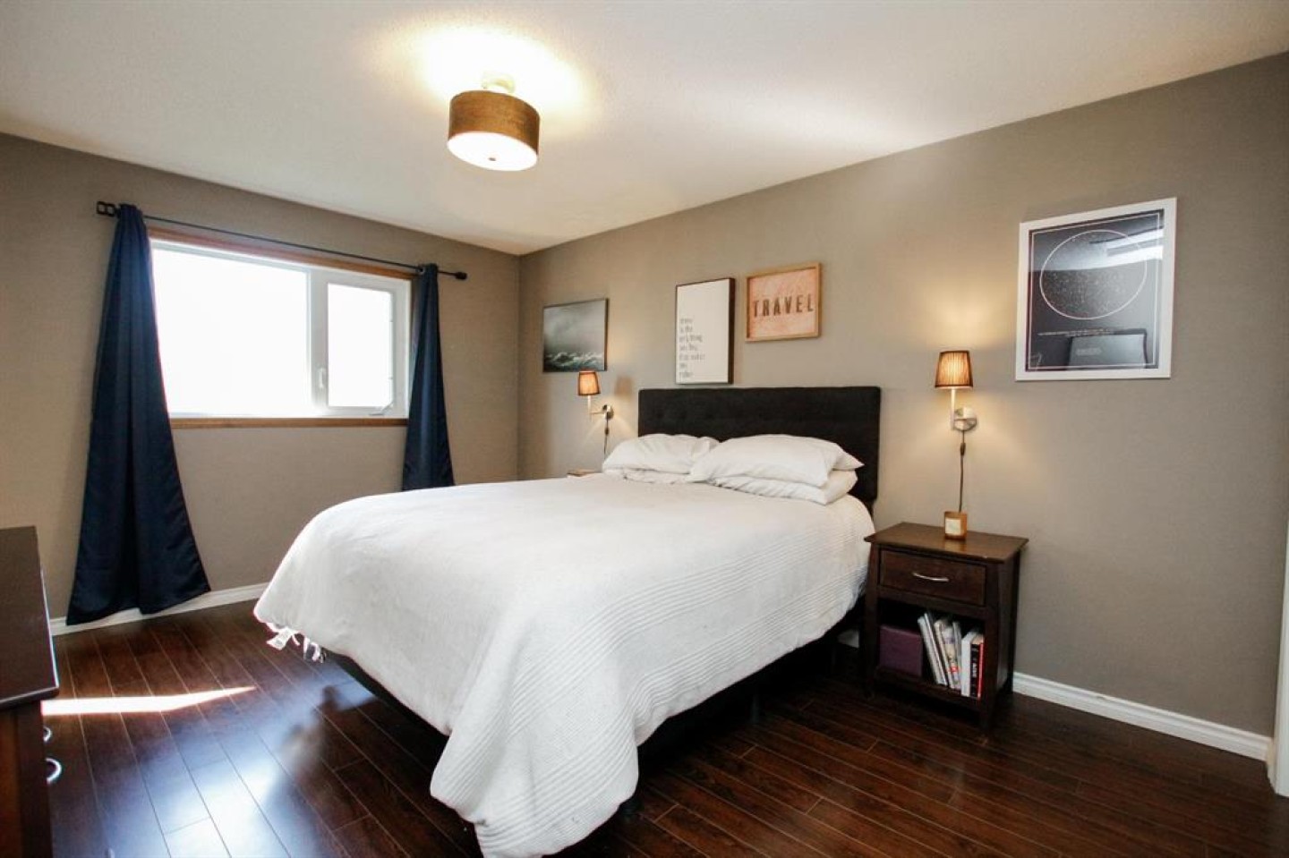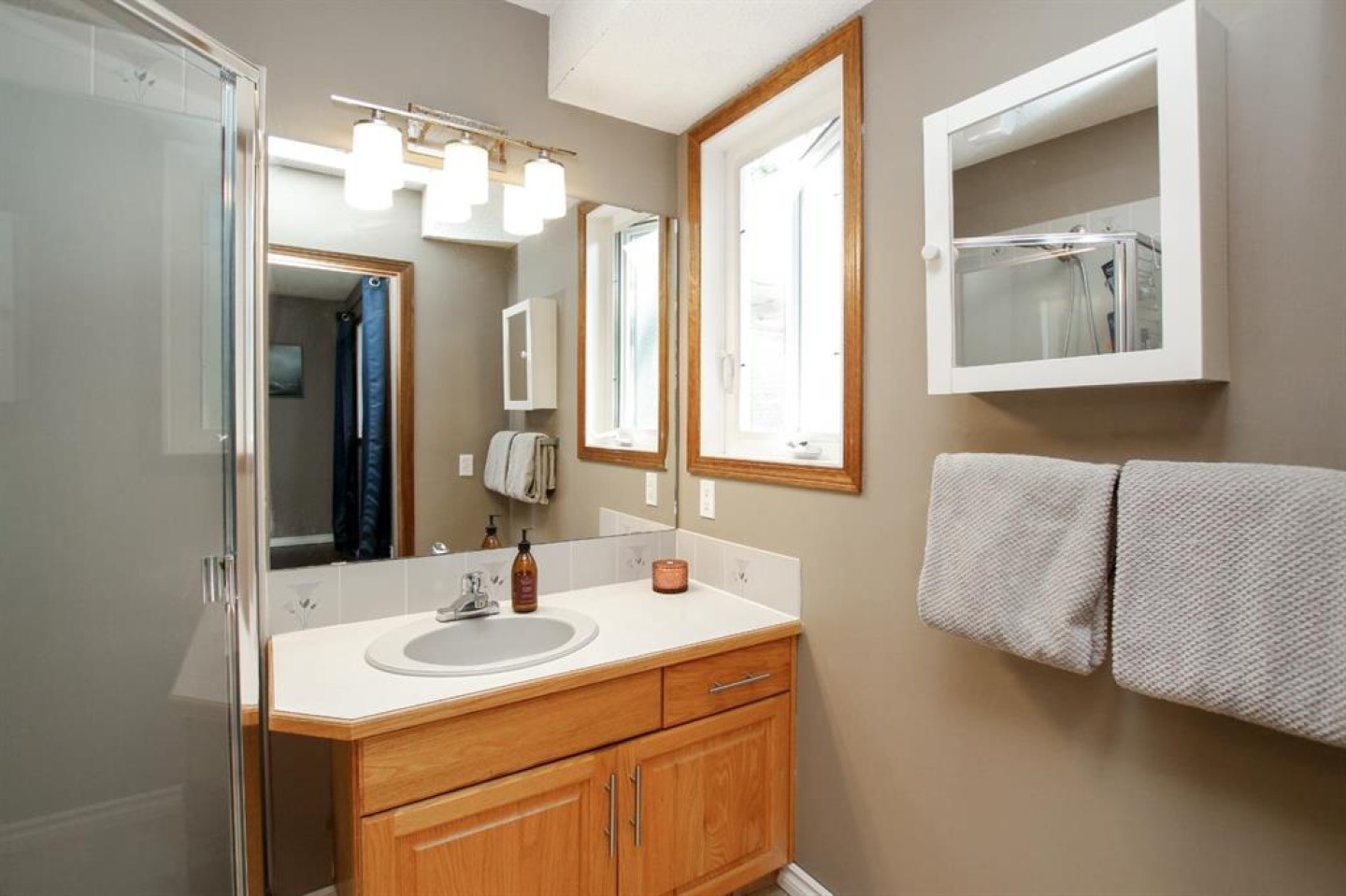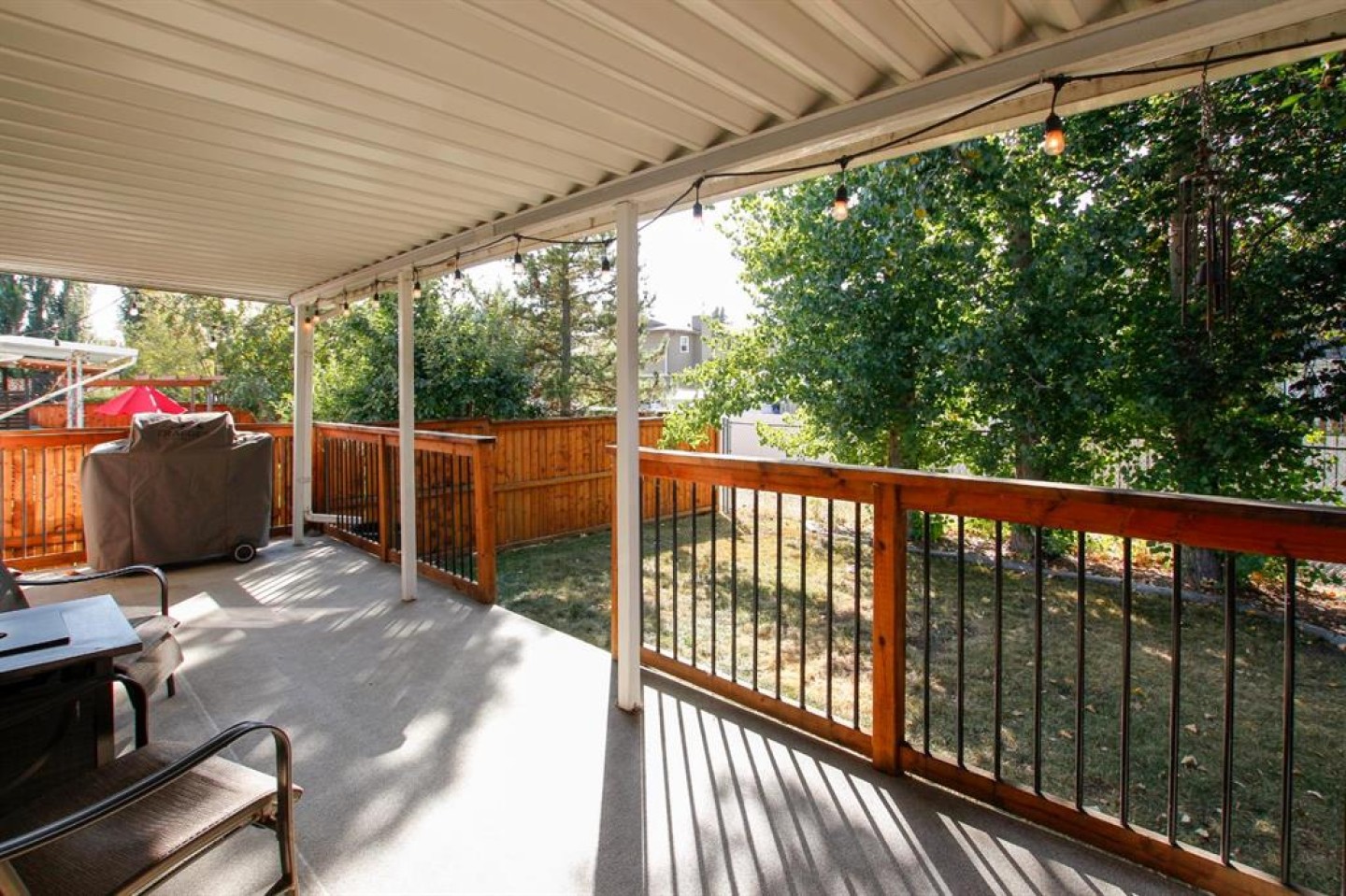 FULLY DEVELOPED BUNGALOW WITH OVER 1350 SQ. FT. ABOVE GRADE ~ 22' x 20' DOUBLE GARAGE & GATED RV PARKING ~ SUNNY WEST FACING BACKYARD WITH A COVERED DECK ~ New roof in 2025 ~ Mature landscaping in the front yard offers eye catching curb appeal and welcomes you to this well cared for home ~ The bright and welcoming foyer has tile floors, a built in table and a generous size coat closet ~ The sunken living room has large windows overlooking the front yard that fill the space with natural light and features a cozy gas fireplace with a tile surround ~ More large windows in the spacious dining room that fill the space with natural light, with plenty of space to host large gatherings, and French garden doors to the covered deck spanning over 23' wide ~ The kitchen comes well equipped with plenty of light stained cabinets and ample counter space, and offers a built in desk, island loaded with drawers, full tile backsplash, window above the sink, and stainless steel appliances ~ Just off the kitchen is a mud room with a separate entry with access to the deck and conveniently located main floor laundry ~ The primary bedroom can easily accommodate a king size bed plus multiple pieces of furniture and offers a convenient 3 piece ensuite ~ 2 additional bedrooms are both a generous size and are located across from a 4 piece bathroom ~ The fully finished basement offers tons of additional living space including a massive family room, media room/flex space loaded with built in storage cabinets, 2 large bedrooms, a 3 piece bathroom, second laundry hook ups, and space for storage ~ Double attached garage with a new overhead door ~ The sunny west facing backyard is landscaped with mature trees, shrubs and perennials, has a concrete parking pad, and is fully fenced with an RV gate to the back alley ~ Located close to schools, parks, playgrounds, walking trails and sports courts with easy access to all other amenities ~ Pride of ownership is evident!