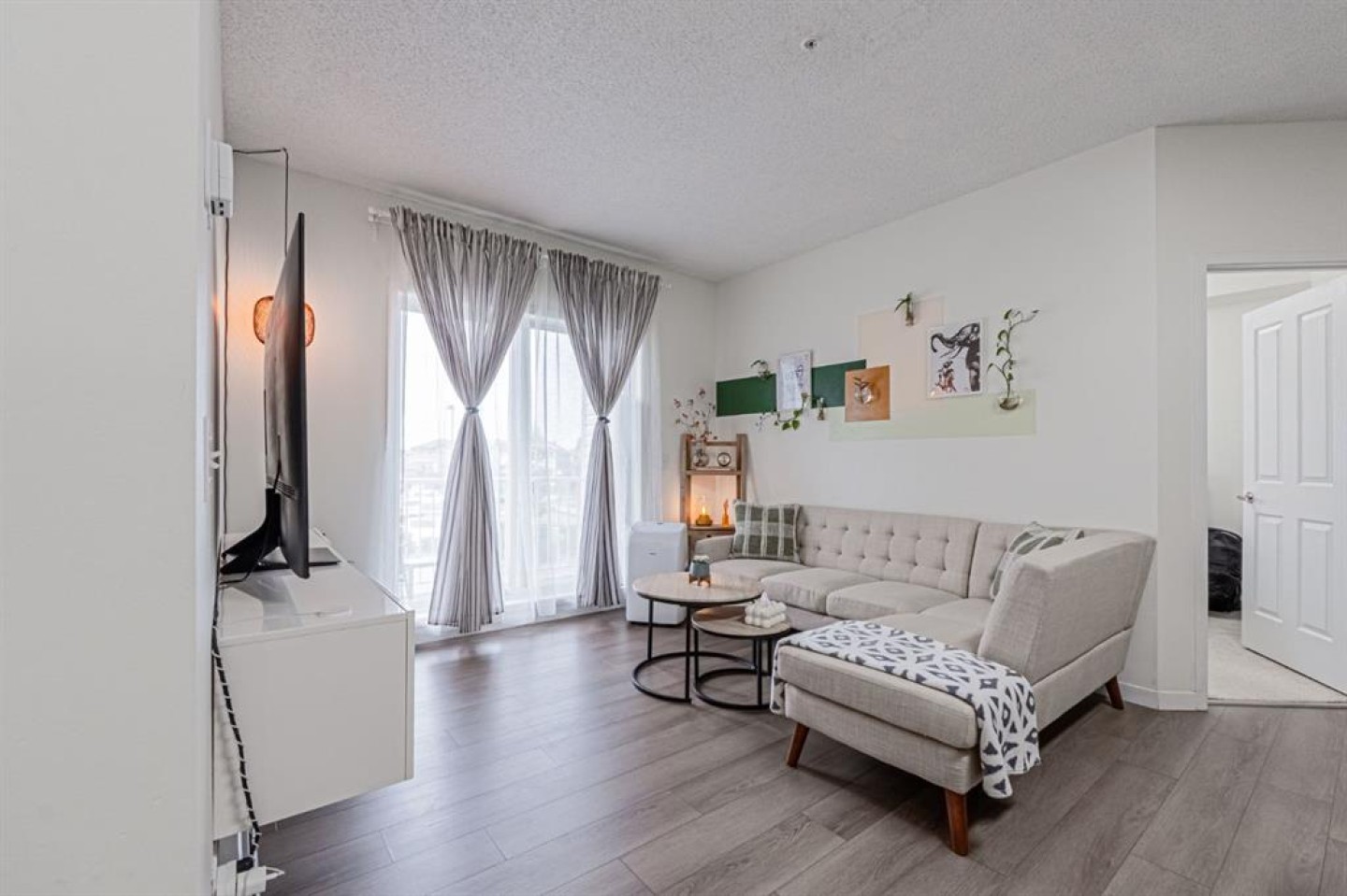 The open-concept layout features a sleek kitchen with a sit-up breakfast bar, flowing effortlessly into the dining and living space — perfect for entertaining or relaxing. The primary suite includes a walk-through closet and a private 4-piece ensuite, while the second bedroom and bath sit on the opposite side — ideal for roommates, kids, or guests.