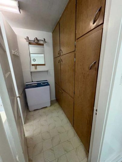 Check out this cute family bungalow. 897 sqft. Three bedroom, two bathrooms. Main floor features spacious kitchen. Large dining/living room. Two nice size bedrooms. Four piece bathroom with extra storage cabinets. In the basement you have one more bedroom. A three-piece bathroom. Family room. Two nice storage rooms and a cold room. You will truly enjoy your private backyard. Have your morning coffee on your front or back deck. There is a natural gas connection for your barbeque on the back deck. The double detached garage has 220 V power with back lane access and RV parking. Some renos over the years include shingles, electrical, flooring, front deck. Enjoy the peace and quiet of small town living in the quaint community of Galahad.