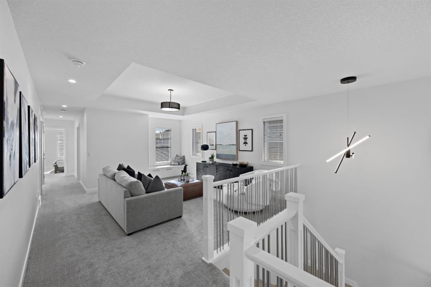 Westland Estates, where luxury living meets modern design—crafted to perfection by TRUMAN Homes. This stunning residence is a showcase of elevated craftsmanship, thoughtful planning, and premium finishes, delivering an exceptional lifestyle in one of West Springs’ most sought-after communities. Step inside and experience the wow factor immediately. The open-concept main floor is anchored by a chef-inspired kitchen featuring full-height cabinetry, soft-close doors and drawers, gleaming quartz countertops, a premium appliance package, and a beautifully organized walk-in pantry with custom built-ins. Whether you're hosting a lively dinner party or preparing a quiet weeknight meal, this kitchen is designed to impress. The kitchen seamlessly flows into the sun-filled great room, where soaring two-story ceilings create a grand and airy atmosphere. A striking quartz-faced fireplace adds warmth and style, making it the perfect gathering place for cozy evenings or vibrant entertaining. With 9’ ceilings, wide-plank hardwood floors, a versatile main-floor den, and a chic 2-piece powder room, every detail has been curated for comfort, convenience, and sophistication. Upstairs, retreat to the luxurious primary suite featuring a tray ceiling, spa-inspired 5-piece ensuite, and a generous walk-in closet. A central bonus room offers flexible living space, complemented by two additional bedrooms, a modern 4-piece bath, and convenient upper-level laundry—designed to support today’s busy lifestyles with ease. The lower level awaits your personal touch, complete with a separate side entrance—ideal for future development such as a recreation area, home gym, or media haven. Built by TRUMAN, this home embodies their signature style: timeless design, exceptional craftsmanship, and a commitment to helping you Live Better. Nestled in the coveted community of Westland Estates in West Springs, this is a rare opportunity to enjoy upscale living with unparalleled charm and convenience. Stay tuned—full photo gallery coming soon, including images of a similar home!