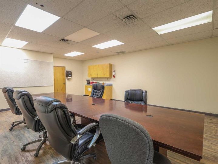 Looking for a bright, comfortable office space in the heart of Stettler? This inviting space is just three blocks off Main Street and right near Highway 56, making it easy to find and convenient for your clients and staff. Step inside to a shared front entrance filled with natural light. The large lobby has a welcoming front desk with privacy screen that could also serve as a workspace for a couple of people. There are 4 offices, each with windows, including one larger office that could fit a few desks if you need a shared work area. You will also enjoy access to a spacious boardroom with a table, sink, and cabinets—perfect for team meetings or client gatherings. The building has two separate bathrooms, light wood doors throughout, and a back entrance with room for coats and shoes plus parking right outside for added convenience. Stettler is a friendly, growing community with about 6,000 residents in town and another 5,300 in the surrounding county. Its central location makes it a great spot for businesses to connect with both locals and neighboring areas. This space is an excellent opportunity for anyone looking to start fresh, expand, or simply settle into a supportive and community-minded place to do business. Lease price includes utilities.