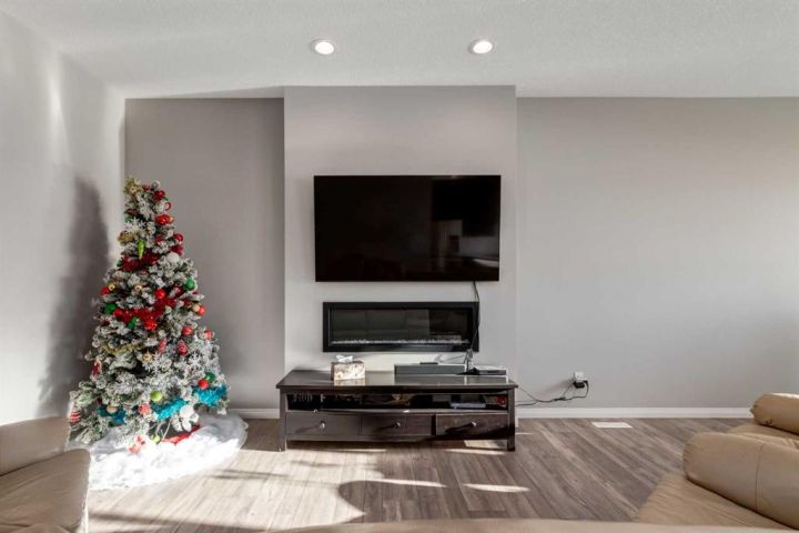 Welcome to this well-designed home with a desirable south-facing backyard located in the vibrant community of Livingston. The contemporary kitchen features full height kitchen cabinets with a substantial bulkhead above, quartz countertops, a huge central island, upgraded stainless steel appliances, including 36" gas cooktop, built in wall oven and microwave and chimney hood fan and a walk-through pantry conveniently close to the mudroom and entry from the double-attached garage. The main floor boasts 9-foot ceilings, upgraded modern lighting and lots of pot lights, luxury vinyl plank flooring and a spacious living room with a modern electric fireplace. The dining area accommodates large dining furniture and seating for entertaining family and friends and leads to the good-sized rear deck, with a gas line to the BBQ, and stairs down to the backyard. The landscaped south backyard, with trees provides an attractive setting for gardening and outdoor enjoyment.