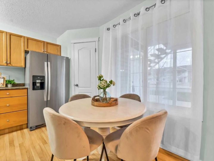 BEAUTIFUL & AFFORDABLE BUNGALOW STYLE “MAIN FLOOR” CONDO! This 893 SQ FT condo is “PET FRIENDLY” and comes with 2 BEDROOMS, 1 BATH AND 2 PARKING STALLS RIGHT OUT FRONT! This is perfect for first time buyers, retirees, or revenue seekers and is an excellent opportunity to own instead of renting PLUS quick possession is possible! Close to all amenities including shopping, schools, parks, transit, Leisure Centre and so much more! The layout is well thought out and features an airy kitchen with eating area, pantry, NEW dishwasher (June 2025), a separate living room, 2 bedrooms and a combination laundry/4 pc bathroom. Recent maintenance and upgrades include NEW A/C (June 2025) and a Newer motor fan in the furnace. There’s also a flexible nook area that is a perfect computer or play area. The ground level patio means no stairs! This condo boasts TWO PARKING STALLS just out the front door, and the monthly fees of only $279 includes heat, water, exterior maintenance, reserve fund contributions and trash. Pets are allowed with restrictions. IDEAL PRICE FOR THIS CONDO SO CALL TODAY!