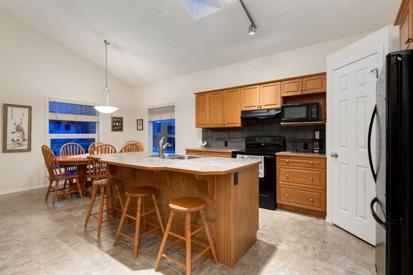 Breakfast Bar, Ceiling Fan(s), Kitchen Island, Laminate Counters, No Animal Home, No Smoking Home, Open Floorplan, Pantry, Separate Entrance, Skylight(s), Track Lighting, Vaulted Ceiling(s), Walk-In Closet(s)