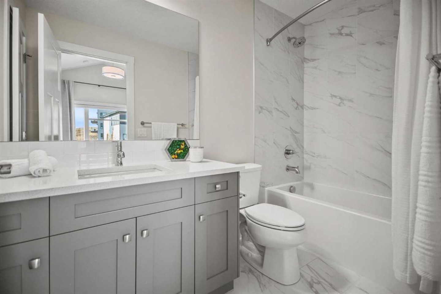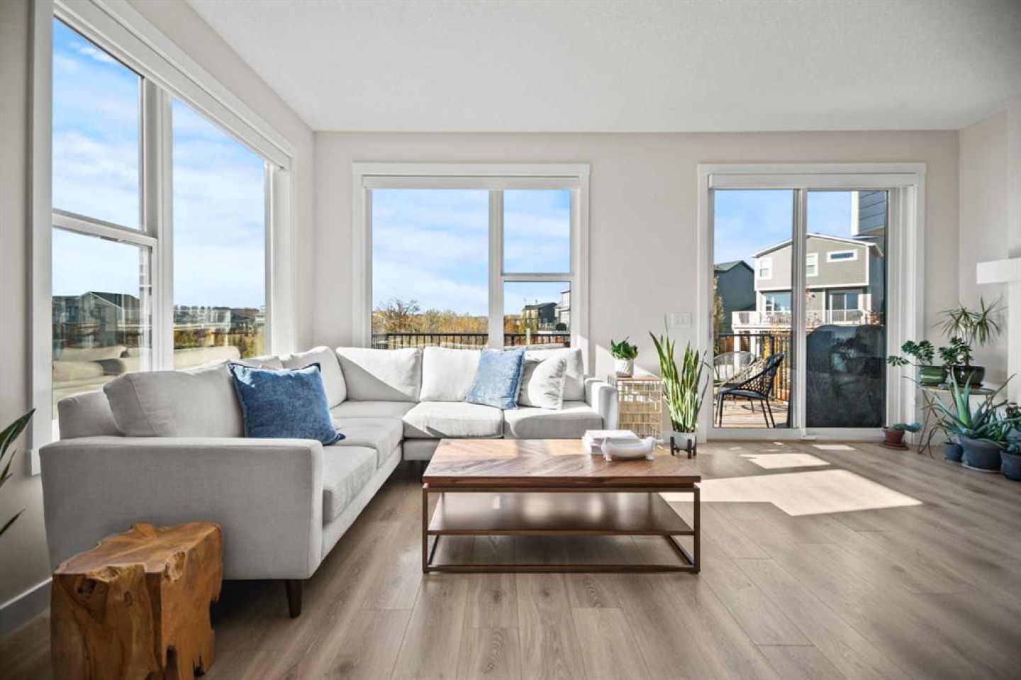 **OPEN HOUSE SAT JAN 31st 2pm-4pm** Welcome to this exceptional detached two-storey home in the prestigious community of Cranston Riverstone — where nature, privacy, and modern design come together beautifully. Backing west with breathtaking open views and no neighbours to the left, this home offers a rare sense of space and serenity, with scenic pathways just steps from your door. Inside, the open-concept main floor is finished with wide VINYL PLANK flooring, a striking electric FIREPLACE, and a chef-inspired kitchen featuring QUARTZ COUNTERTOPS, GAS RANGE, STAINLESS STEEL appliances, and a generous ISLAND perfect for gathering. Step out onto the WEST-FACING 20x10 REAR DECK with BBQ GAS line. Take in unforgettable sunsets over the natural landscape — a view that truly sets this home apart. Upstairs, the thoughtfully designed layout places the primary bedroom with VAULTED CIELING and huge SOAKER TUB just six steps above the main level, creating a private retreat separated from the two rear children’s bedrooms — ideal for both family living and quiet relaxation. The fully developed walkout basement extends your living space beautifully, perfect for entertaining, a home gym, or media room. Fully landscaped yard with FIREPIT and FENCED YARD. Complete with an EPOXY FINISHED FLOOR in garage and meticulous attention to detail throughout, this home is truly one of a kind. A rare opportunity to own a showstopper property with unmatched views in one of Calgary’s most desirable riverfront communities.
