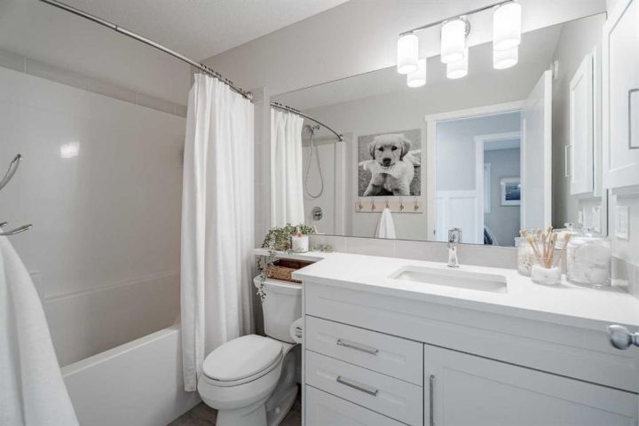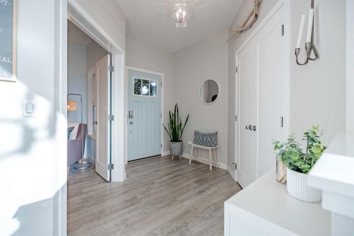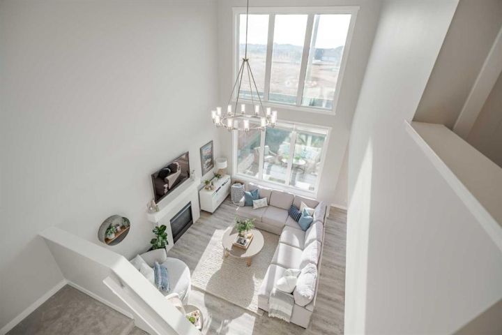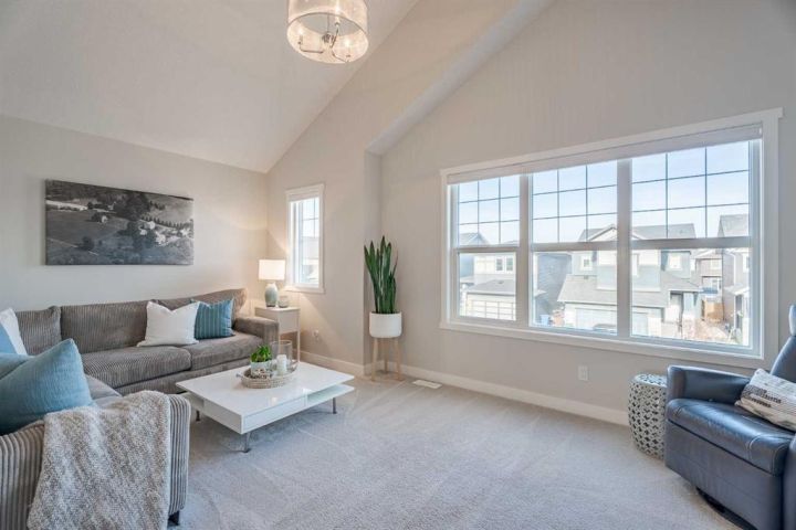 Welcome home to this stunning property in one of Airdrie’s most loved south communities, Kings Heights; with easy and quick access to Deerfoot. Perfectly tucked away on a quiet crescent, this home backs onto beautiful acreage properties, offering a rare sense of space and peaceful, country-style living just minutes from Kingsview Market, its amenities, and a nice selection of nearby schools. Inside, soaring two-storey windows flood the main living area with natural light — a breathtaking view you can also enjoy from the second level. The main floor features ultra-durable laminate floors, a spacious living room centered around a stunning feature fireplace, and a chef’s kitchen with upgraded appliances, and sleek quartz counter throughout. A main floor office/den conveniently placed by the front entrance provides an ideal space for work or study. Upstairs, you’ll find three spacious bedrooms, including a primary suite with a large walk-in closet with built-ins and a spa-inspired 5pc ensuite. You’ll love the open view of the main living area below, where sunlight pours through the dramatic windows. A spacious vaulted ceiling bonus room, along with wainscoting and feature walls throughout, add timeless charm and a perfect amount of living space. The undeveloped basement with a rough-in bathroom awaits your finishing ideas, while the double attached garage provides everyday convenience. Step outside to a large backyard with plenty of room to play, relax, and grow. This home perfectly blends light, luxury, and livability, offering the warmth of country charm with the convenience of city life.