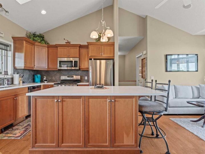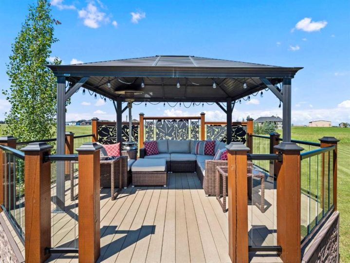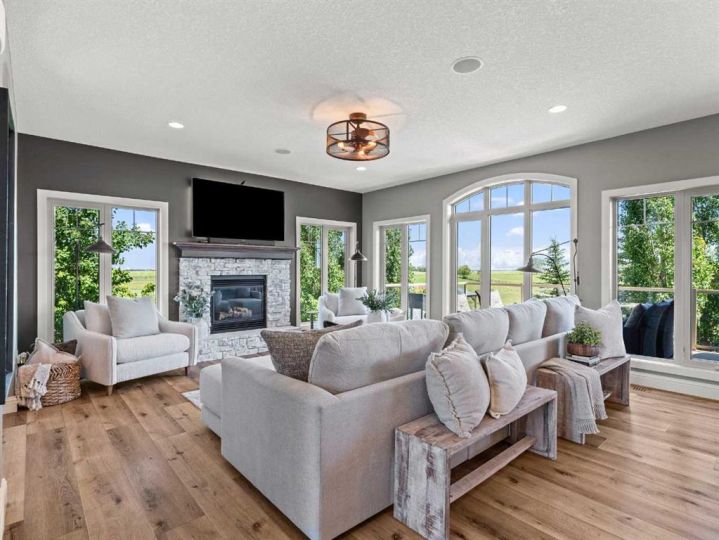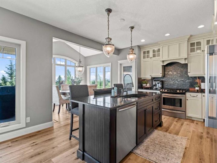 **2 HOMES IN ONE** 5.14 ACRES ** 54'x32' SHOP** Unique opportunity to have a custom built 2 STOREY HOME attached to a BUNGALOW. ~Multi family generational living at its finest~ This exquisite property has been immaculately maintained and is ready for its new owners. Step inside to this Air-conditioned , showhome like setting - and embrace the feeling of home. The updates through out the home shine through as you step through the main living area on the beautiful luxury flooring. Huge windows allow plenty of natural light and views of the big Alberta Skies. The beautifully presented kitchen is the true heart of the home featuring upgraded appliances, loads of cabinetry, and a large sit up island. A perfect place to entertain guests with an open floorplan that combines , living, dining, and kitchen in one space. The upper level boasts a primary suite suited for king sized furniture, and a renovated ensuite with 2 way fireplace. Enjoy the views in this tranquil setting while relaxing in a space that you will not want to leave. The architecture of the rooflines on this home will capture your eyes and your heart. Another bedroom, bathroom, and loft style bonus space ( can be used as 3rd bedroom) complete this upper level. The lower walkout level gives a good place for a recreation area, gym, home based business, or whatever your needs may be. The bungalow "wing" of this expansive home provides a full second living area. The large kitchen, vaulted ceilings, huge amounts of natural light, and open floor plan, make this cozy space the perfect place to settle into. This part of the home offers 1 bedroom up plus ensuite and 2 piece bathroom. The lower level walkout has 2 more bedrooms, another full bathroom, and a huge living space. After falling in love with the interior of this home you are definitely going to love the outdoor space. With 2 upper decks, 2 front porches 2 lower patio spaces, a covered gazebo sitting area, a poolside pergola deck overlooking the stunning heated pool, an outdoor fireplace , this place is made for entertaining, staying home, and making memories! The 54 x 32 shop is icing on the cake. Immaculate landscape, mature trees, triple heated garage wide open spaces- there is truly something for everyone at this exceptional property. Send the kids on the bus right from your driveway, this is a quick commute to Calgary and Okotoks. Become a part of the Davisburg community and enjoy their events just down the road from home. THIS PROPERTY IS TRULY THE CHANCE OF A LIFETIME ...