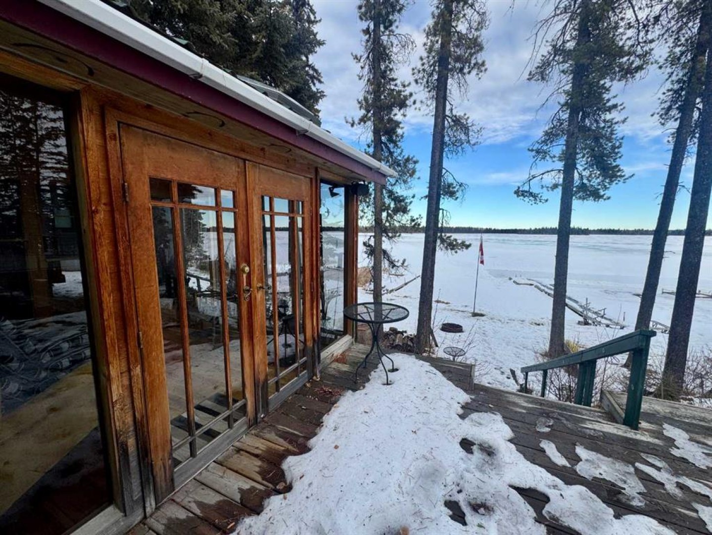 Has lake life been calling your name? Here's your opportunity to own a charming cabin on a lease lot in Crimson Lake Provincial Park with 40' of lake frontage. You'll feel the serenity of lake life as soon as you step through the front door and into the large great room where you can look out through the oversized windows to the beautiful lake vista. There's a small kitchen area that blends with the wide open living space and amazing rock surround fireplace. Patio doors open to the lake side deck and stunning sunroom. The one bedroom is large enough for multiple beds including custom built bunkbeds and also has a patio door that opens to a deck on the west side. An alcove is currently being used as another bedroom and has a lovely view of the lake (there is presently sleeping accommodations for 6 people). The three piece bathroom has a large closet (previous sauna?) and all furnishings in the cabin are included with the sale. The lot has just the right amount of landscaping with a set of stairs going to the lake front and fire pit as well as a brick patio and fire pit near the back deck. There's a feature rock garden and fountain at the front of the property and several storage sheds. This is a Provincial Lease which renews in January 2045, PML 820381. Annual lease payment of $1356.00 (due January 1, 2026) and the assignment fee is $3150,00 + GST.