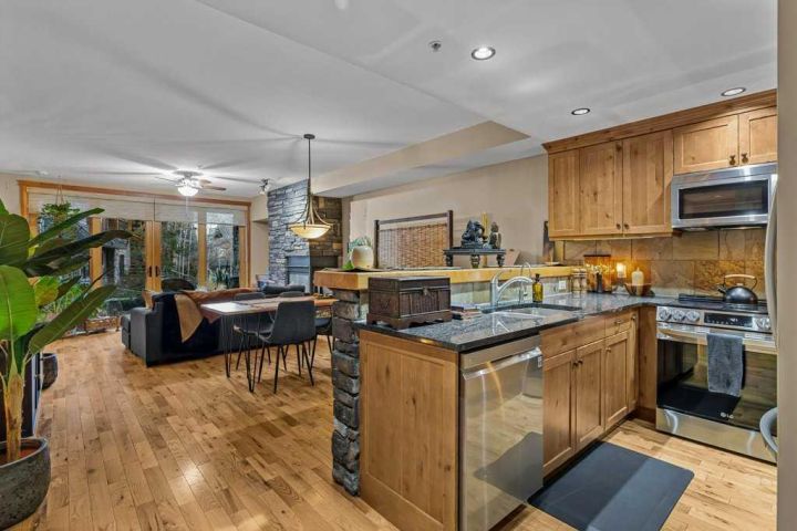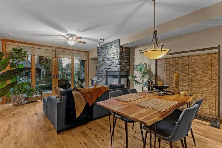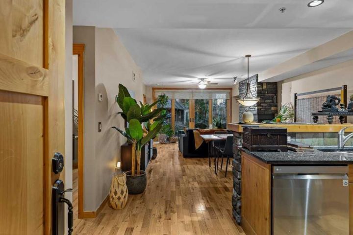 Your Zen Mountain Oasis Awaits in Timberline! Experience the perfect blend of mountain serenity and modern design in this beautifully updated 2-bed, 2-bath condo in Timberline Lodges in Three Sisters. Step inside to find new hardwood flooring, fresh paint, and an open-concept layout that connects seamlessly to a peaceful garden-level patio - ideal for morning coffee, quiet evenings, or easy access for four-legged friends. The kitchen offers generous storage and prep space. The primary suite features a private ensuite, while the second bedroom and full bath make hosting guests effortless. Enjoy unbeatable Timberline amenities: indoor pool, outdoor hot tub, owners’ lounge, and lush landscaped paths. Exceptional value and optional furnishings for an effortless move. Settle into Timberline, soak in the views, and start living your Canmore dream today. No short term rentals permitted.