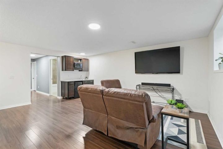 Lake Living Awaits in Auburn Bay! Fall in love with this bright and stylish lake-access bungalow featuring vaulted ceilings, large windows, and a fresh, modern feel. Recently updated with new flooring (Oct 2025), brand new kitchen appliances (fridge, stove, microwave hood fan – Oct 2025), and freshly painted, inviting, and ready to enjoy. The open concept layout is perfect for entertaining with seamless flow between the kitchen, dining, and living area, ideal for gathering with friends and family. You've got two bedrooms on the main level or use one as an office if you work from home. Downstairs you will find a finished basement offering offers a spacious family room with a wet bar, two additional bedrooms, a storage room and a 4-piece bathroom. The fenced backyard offers a spacious deck for gatherings or relaxing in the sun, plus plenty of room to build your dream garage. Enjoy Auburn Bay’s four season lake lifestyle: swim, paddleboard in the summer, skate and join community events in winter. Close to the South Health Campus, movie theatre, shops, top restaurants, and the off leash dog park. This is the one you’ve been waiting for—fresh, move-in ready, and full of charm. Welcome home to Auburn Bay!