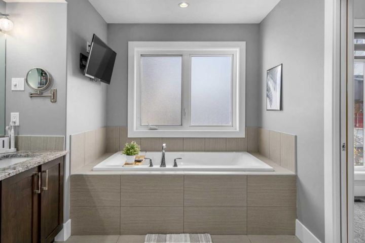 Welcome to your dream home in the heart of Montgomery, one of Calgary’s most sought after and revitalized inner city communities! This stunning, fully finished custom built infill offers approx 2800sq. ft. of beautifully maintained living space featuring 4 bedrooms, 3.5 bathrooms, and a double detached garage. Step inside to discover an inviting open concept main floor with 9’ ceilings, gleaming hardwood floors, and a sun filled living room anchored by a sleek gas fireplace with custom built-in shelving. The chef’s kitchen impresses with premium stainless steel appliances including a VIKING gas cooktop, pot filler, and an oversized granite island, perfect for entertaining. Additional main floor highlights include a spacious mudroom, bright dining area, and built-in speakers throughout. Upstairs, unwind in the luxurious primary suite complete with a spa-inspired 5-piece ensuite featuring a large steam shower, oversize jetted tub, dual vanities, and heated floors. Two additional bedrooms, a stylish 4-piece bath, and a convenient upper-level laundry complete the second floor. The fully developed basement adds incredible versatility with a large recreation room, wet bar, 4th bedroom, full bath and ample storage. Outside, enjoy low-maintenance landscaping and a custom deck with pull-down shades, the perfect spot for summer evenings. The home also features a water softener and reverse osmosis system for your comfort and peace of mind. Ideally located steps from the Bow River, parks, schools, pathways, and just minutes to popular restaurants, coffee shops, COP, Market Mall, and major routes, this property blends modern luxury with unbeatable convenience. Don’t miss your chance to call this exceptional Montgomery home your own!