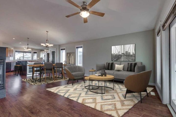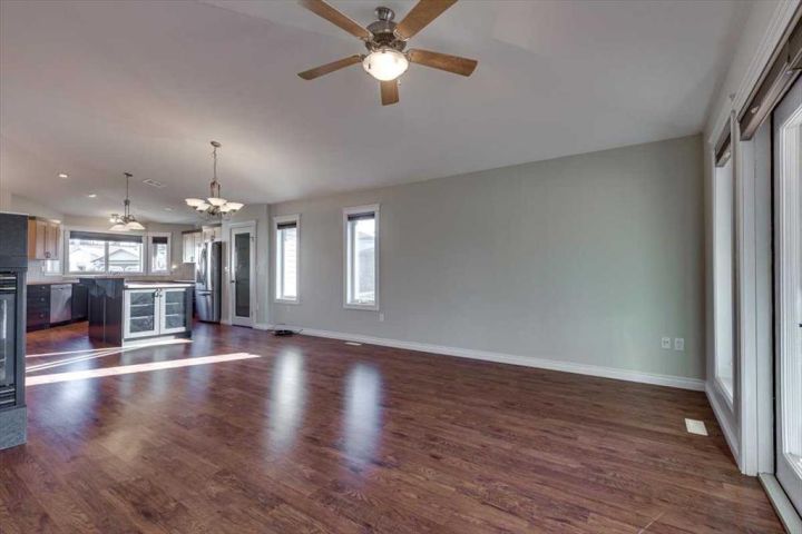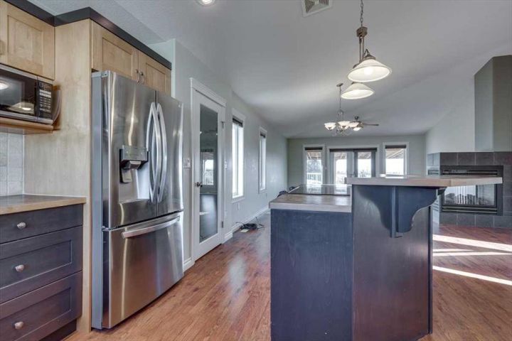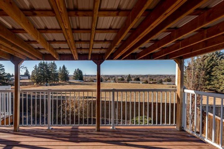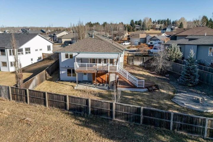 Welcome to 4206 41 Street Close - a classic hideaway in one of Ponoka’s most desirable cul-de-sacs. This beautiful hillside walkout bungalow, built in 2005 and backing onto peaceful green space, offers a bright, open layout with an expansive west-facing view that captures the evening light perfectly. Don’t underestimate this design. Its tranquil layout could suit retirement just as easily as it could welcome a family. It’s large enough to host a crowd yet manageable for easy upkeep - the ideal balance of comfort and simplicity. The main floor offers an open-concept kitchen, dining, and living area centered around a double-sided fireplace, with access to a covered upper deck - the perfect place to relax in shade or enjoy the sunset. The kitchen provides generous counter space, an island with breakfast bar, and a large pantry. The spacious primary suite includes his-and-hers closets and a large ensuite with dual sinks, a corner tub, and a separate shower. Downstairs, the walkout basement expands your living space with a family room that opens to the backyard, a media room or home office, two additional bedrooms, and a full bath. Both the basement and double garage feature in-floor heat for year-round comfort. Outside, the fully fenced yard is private and well-designed with multi-level decks, underground sprinklers, a storage shed, and a cozy firepit area. This home captures everything you want in a peaceful retreat - functional, welcoming, and framed by an unobstructed west-facing view.