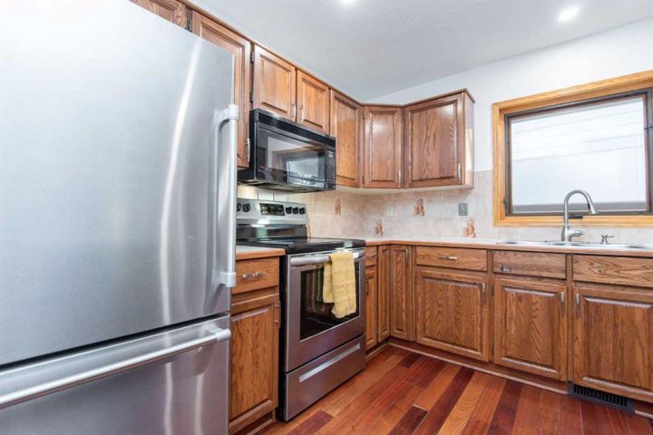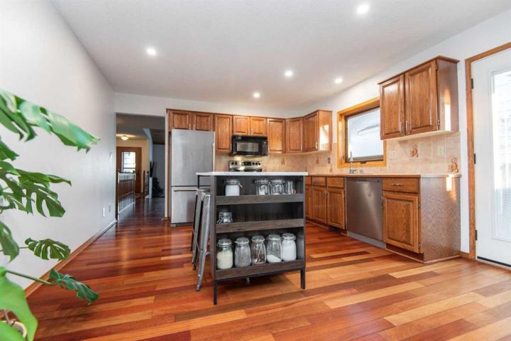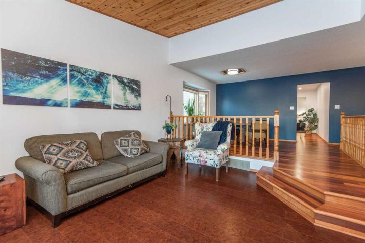 If you’ve been searching for a mature, quiet location on a large private lot, this is the one you’ve been waiting for! Ideally situated across from an expansive park, community hall, playground, ball diamond, and outdoor gym, this home offers both convenience and tranquility. With over 1,570 sq ft on the main level and an inviting, functional floor plan, it’s perfectly suited for entertaining and meeting all your family’s needs. Enjoy cozy evenings in the sunken family room, highlighted by a beautiful bay window, rich Brazilian hardwood flooring, and a warm cedar sloped ceiling that adds character and charm. The kitchen features updated appliances and convenient outdoor access, while the formal great room just off the kitchen boasts a gas fireplace and garden doors leading to the large private vinyl deck. An ideal space for relaxing or hosting guests. The main floor includes three generous bedrooms and two bathrooms, including a primary suite complete with a walk-in closet, ensuite, and private access to the back deck. The partially developed basement adds even more potential, featuring a modern 3-piece bathroom with a tiled shower, fourth bedroom, and additional space ready for future development. Notable upgrades include composite decking, all main floor Pella windows and doors, including the garage window, and shingles installed in 2015. The garage overhead door has been replaced from the original, and the basement offers Durabuilt vinyl windows along with a renovated rec room and bathroom completed in 2010. Additional improvements include a 2018 hot water tank, an upgraded furnace, and updated electrical wiring and panel. This meticulously maintained home offers comfort, privacy, and an unbeatable location. An opportunity you won’t want to miss!
