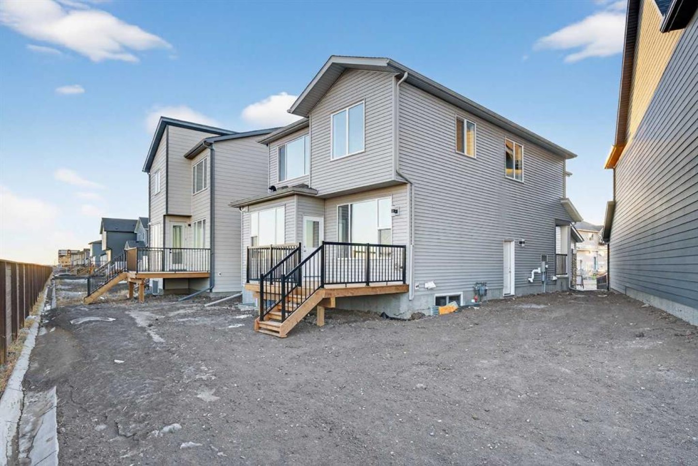 Welcome to your beautiful, brand-new Alliston build featuring 4 bedrooms, 3 full bathrooms, nearly 2,100 sq. ft. of expertly designed living space, and a side entrance to the basement, perfect for future development. This home is ideally located on a pie lot on a quiet crescent, where kids can safely play outside and you can enjoy peaceful mornings with a cup of coffee while watching the sunrise from the views out your East backyard windows. Step inside and be greeted by stylish vinyl plank flooring and airy 9-foot ceilings that flow through the open-concept main floor. The chef-inspired kitchen boasts floor-to-ceiling cabinetry, quartz countertops, a spacious island, and a sleek stainless steel appliance package with a gas stove. A dream for anyone who loves to cook and entertain. The adjoining dining area and living room are bright and welcoming, anchored by a striking electric fireplace that serves as the space's focal point. A main-floor bedroom and a complete bathroom offer flexibility for guests, a home office, or convenient main-floor living. The mudroom off the 19x20 garage (with an additional 4' for stair access) ensures there's ample room for parking two vehicles. Upstairs, the primary suite is your private retreat, featuring a walk-in closet with natural light and a spa-inspired ensuite with a large shower and soaker tub. Two additional spacious bedrooms, another full bathroom, a convenient laundry room, and a front-facing bonus room complete this well-planned upper level. The unfinished basement, with its separate side entrance, offers loads of potential. It's already equipped with bathroom rough-in and wet bar rough-in with water lines, giving you a head start on future development possibilities. Located in the vibrant community of Belvedere in Calgary's southeast, this home offers the perfect blend of urban convenience and relaxed suburban living. With nearby parks, schools, shopping, and easy access to major routes, Belvedere is a welcoming, family-friendly neighbourhood where you can truly put down roots. Photos are representative and are of the same model home with similar colour pallet/finishings. RMS has been applied to builder blueprints. Taxes to be assessed.