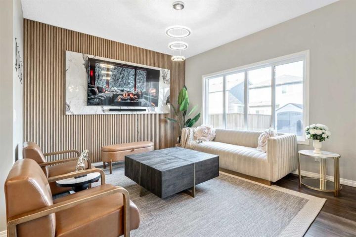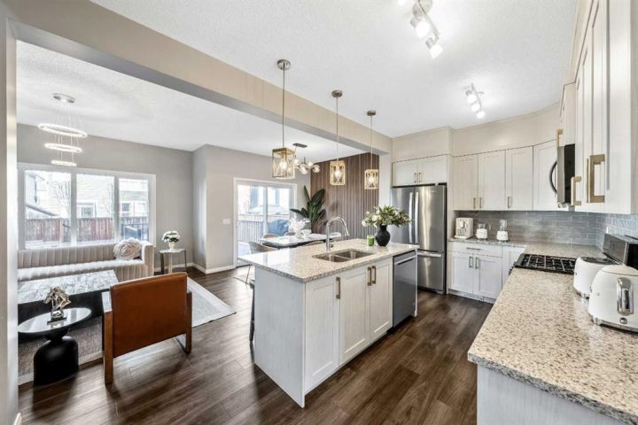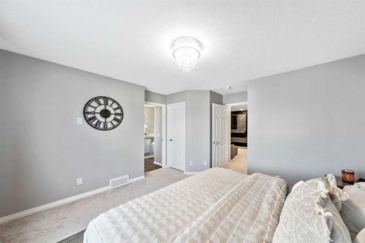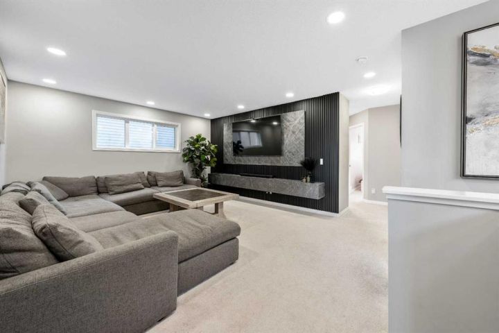 The open-concept layout connects seamlessly to the bright living and dining areas, featuring large windows, a cozy fireplace, and access to a huge extended deck — perfect for summer barbecues or relaxing with friends. A convenient 2-piece powder room completes the main floor. Upstairs, you’ll find three spacious bedrooms, including a stunning primary suite with a walk-in closet and a luxurious 5-piece ensuite featuring dual sinks, a soaker tub, and a separate shower. A bonus room anchors the upper level — ideal for family movie nights or quiet evenings in — along with a laundry area and an additional 4-piece bath. The fully finished lower level expands your living space with a family room, fourth bedroom, full bathroom, and plenty of storage. Additional highlights include 9’ ceilings on both the main and lower levels, central A/C, central vac with kitchen dustpan, triple-pane low-E windows, solar panel rough-in, heat recovery ventilator, and a high-efficiency HVAC system — all designed for maximum comfort and energy savings. The garage is EV-ready with a 240V line already installed, so all you need to bring is your charger! Located close to schools, parks, walking and biking paths, and shopping, this home truly checks every box. Don’t miss your chance to make it yours — schedule your viewing today!
