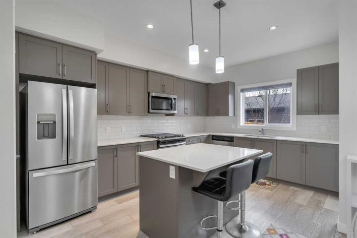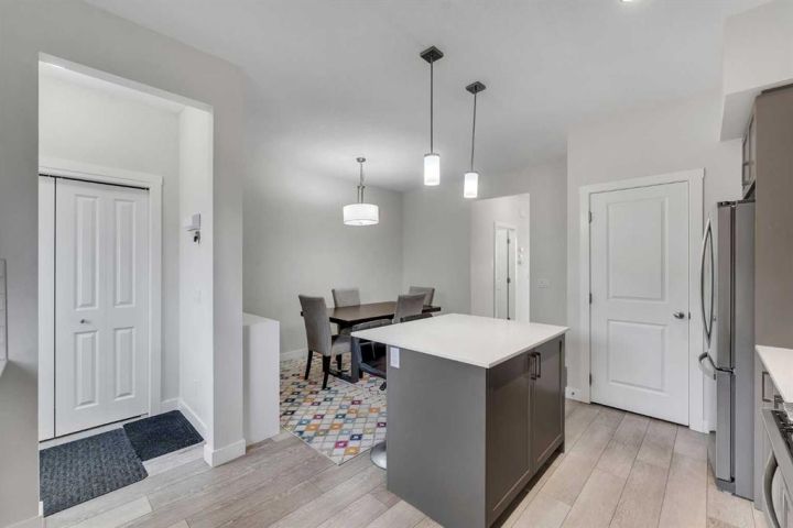 Step into style and comfort with this beautifully maintained 3-bedroom, 2.5-bath home in the desirable community of Midtown — offering incredible value with no condo fees. The bright and open main floor features durable laminate flooring and a welcoming layout that’s perfect for relaxing or entertaining. The modern kitchen stands out with quartz countertops, an under-mounted sink, and plenty of workspace for everyday cooking or weekend hosting. Large east-facing windows fill the home with natural light, creating a warm and inviting atmosphere. Upstairs, enjoy three generous bedrooms, including a spacious primary suite with a walk-in closet and private ensuite. A second full bath and convenient upper laundry complete the level with everyday practicality. Outside, a fenced backyard offers privacy and space to unwind, while the double detached garage adds extra storage and keeps vehicles sheltered year-round. Located close to parks, pathways, shopping, and transit, this home delivers the perfect mix of comfort, style, and convenience — all in one great Midtown location. Move-in ready and waiting for you to call it home.