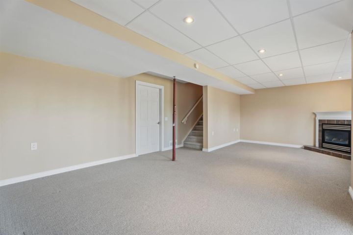 The finished walkout basement is bright and versatile, featuring another gas fireplace and direct access to a private yard — ideal for a recreation room, home office, or gym. There’s also a laundry room with washer and dryer, plus a rough-in for a future bathroom.