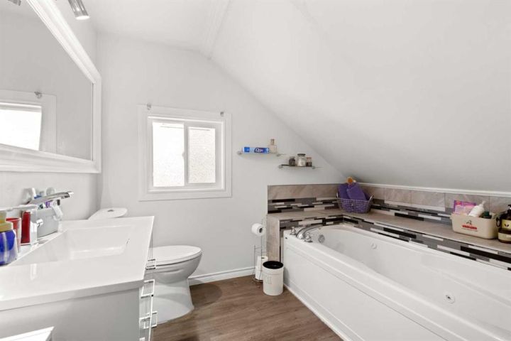 Looking for a fantastic starter home or just an affordable property? Look no further! This adorable 1 1/2 storey on the hill is waiting for you. The main floor is nice and open with a very spacious living area and plenty of room to work in the updated kitchen. Clean and modern plank flooring finishes off the look. Upstairs there are three bedrooms and a spa like bathroom with a custom shower and soaker tub. The back yard features a private covered veranda and fully fenced yard. Situated in a fantastic location near Alexandra School you can enjoy the beauty of “the hill” while still being close to many amenities. Come take a look for yourself 🙂
